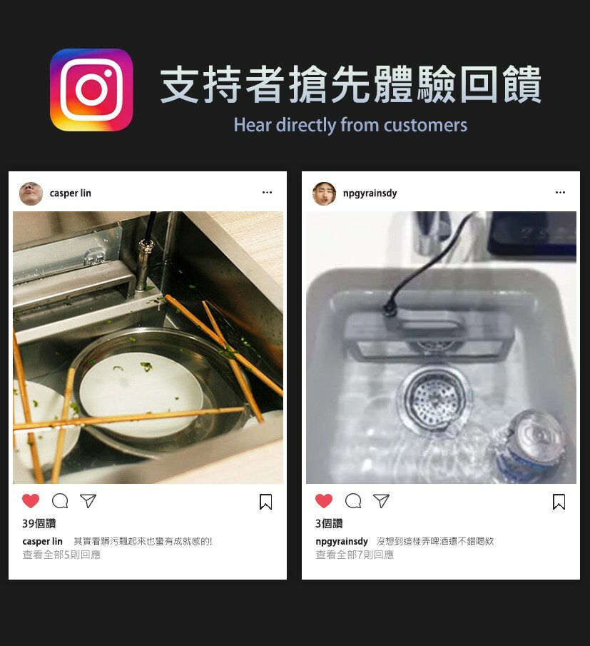 A7:脈衝洗碗機接電後只要把主機放在流理台上,再把超聲波面板放進裝滿水的水槽裡就好了喔。