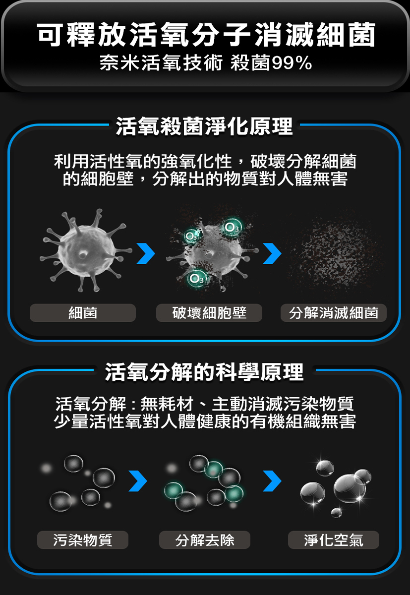 ✅負離子數量達3000萬結合活氧殺菌功能