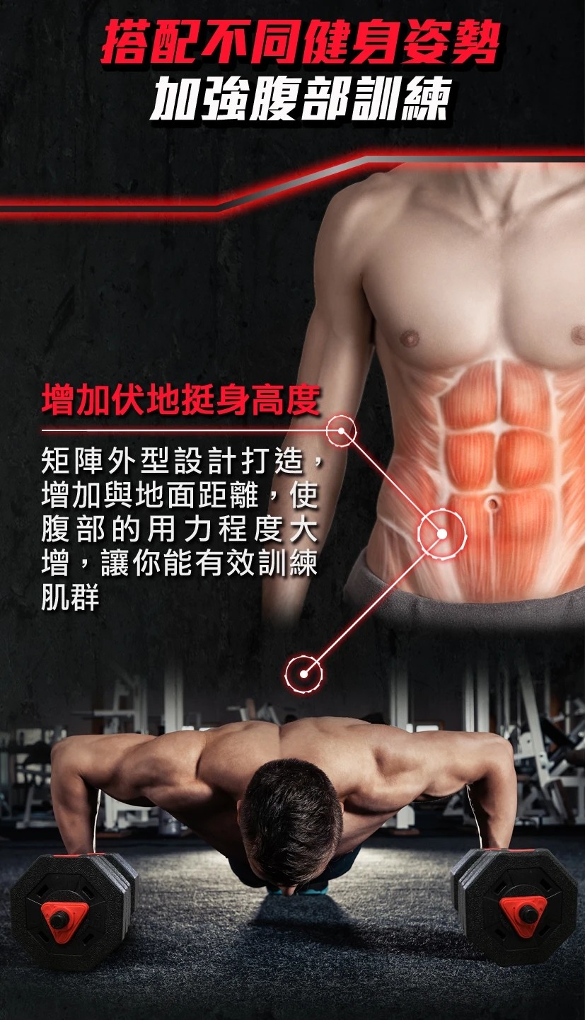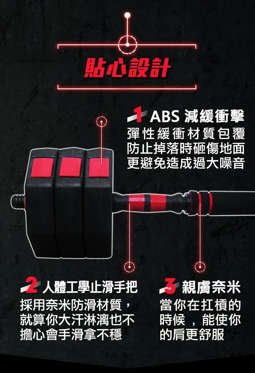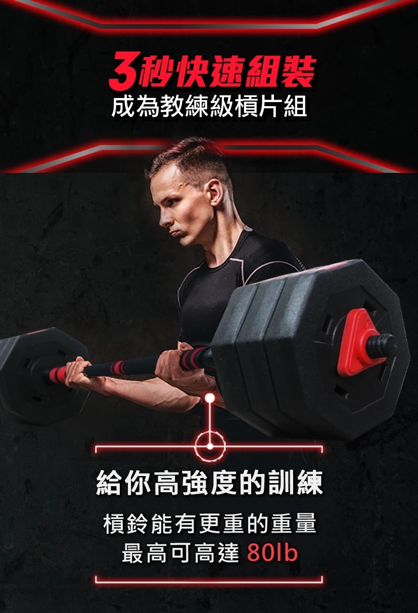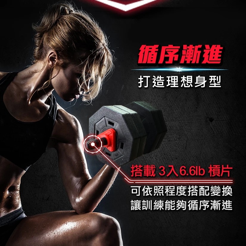 輕鬆變換,還可以一秒變成槓片組,臥推、臥舉、深蹲,各種肌耐力重量訓練一次搞定,讓你不用去健身房也能輕鬆健身,百大健身教練一致推薦。地表CP值最高啞鈴,不用像舊式的啞鈴一樣,一買再買。