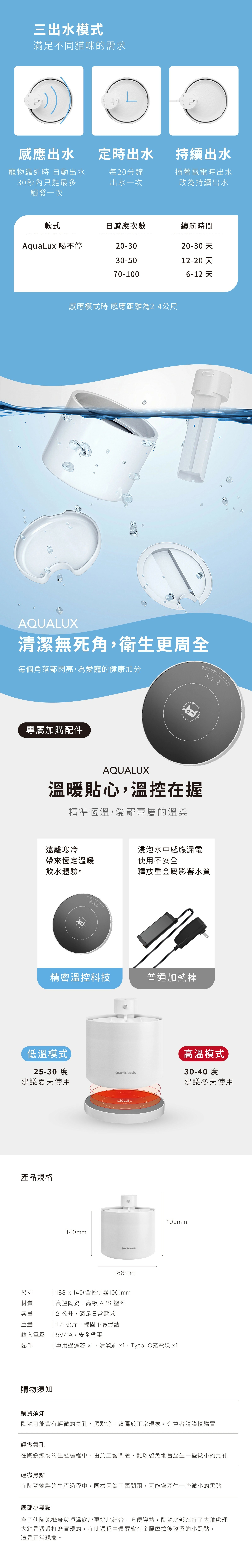 ●型號:AquaLux 寵物智能陶瓷飲水機