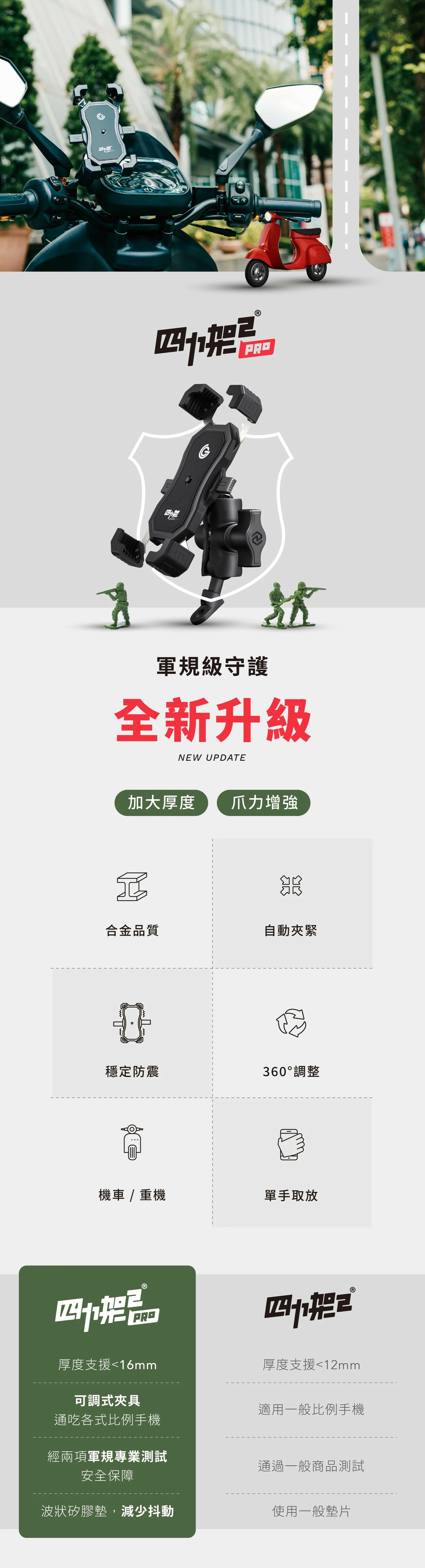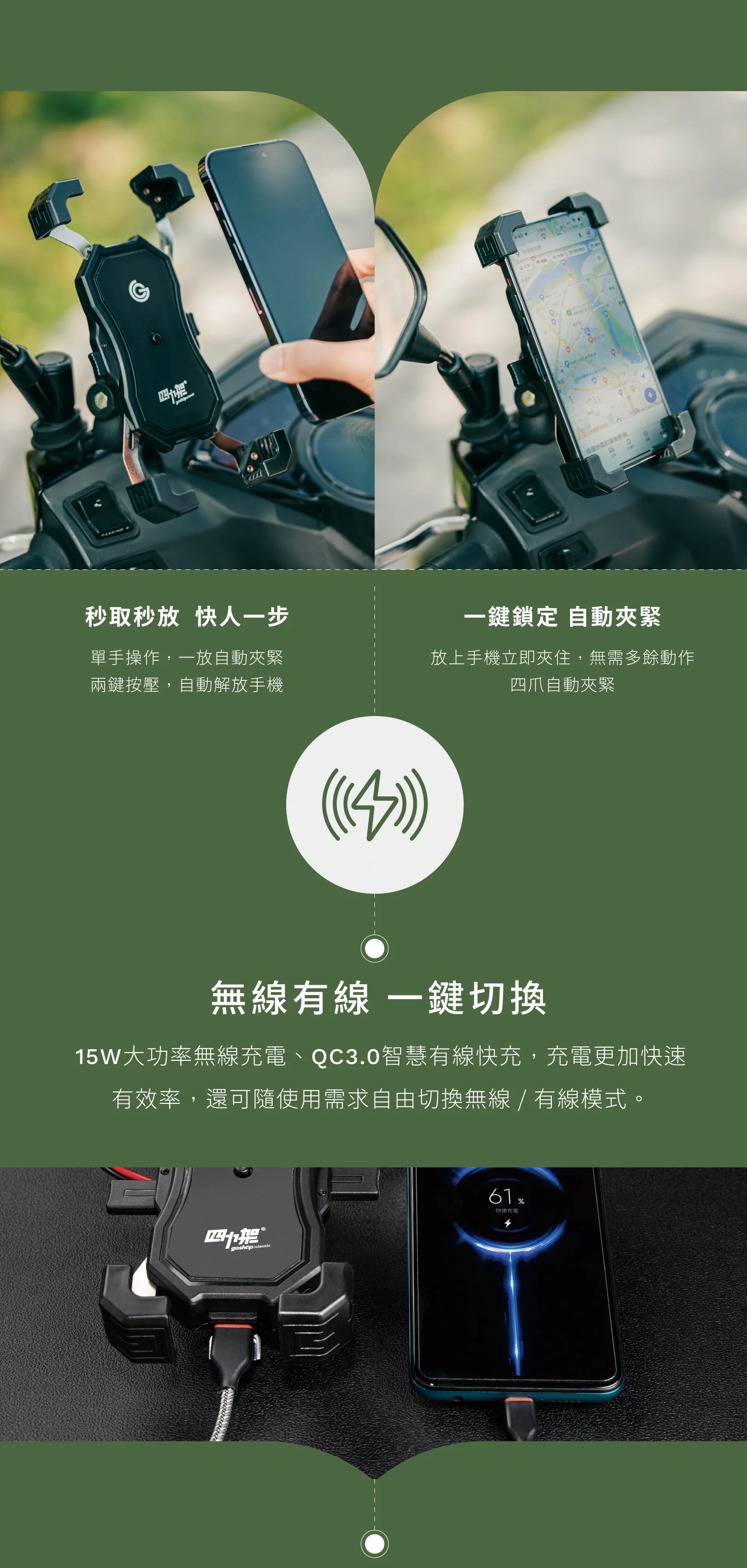 【grantclassic】四力架 2 Pro 手機架 |機車單車手機架 無線充電