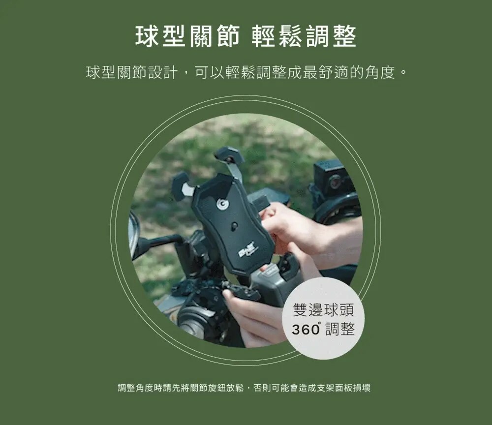 ※ 使用本機車用手機架行駛前,請先檢查車架是否正常無瑕疵、安裝是否牢固、鎖緊不會掉落,若因沒有確實檢查等等人為因素造成手機掉落,本公司概不負責。