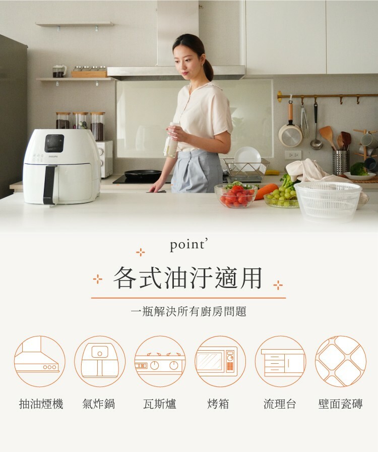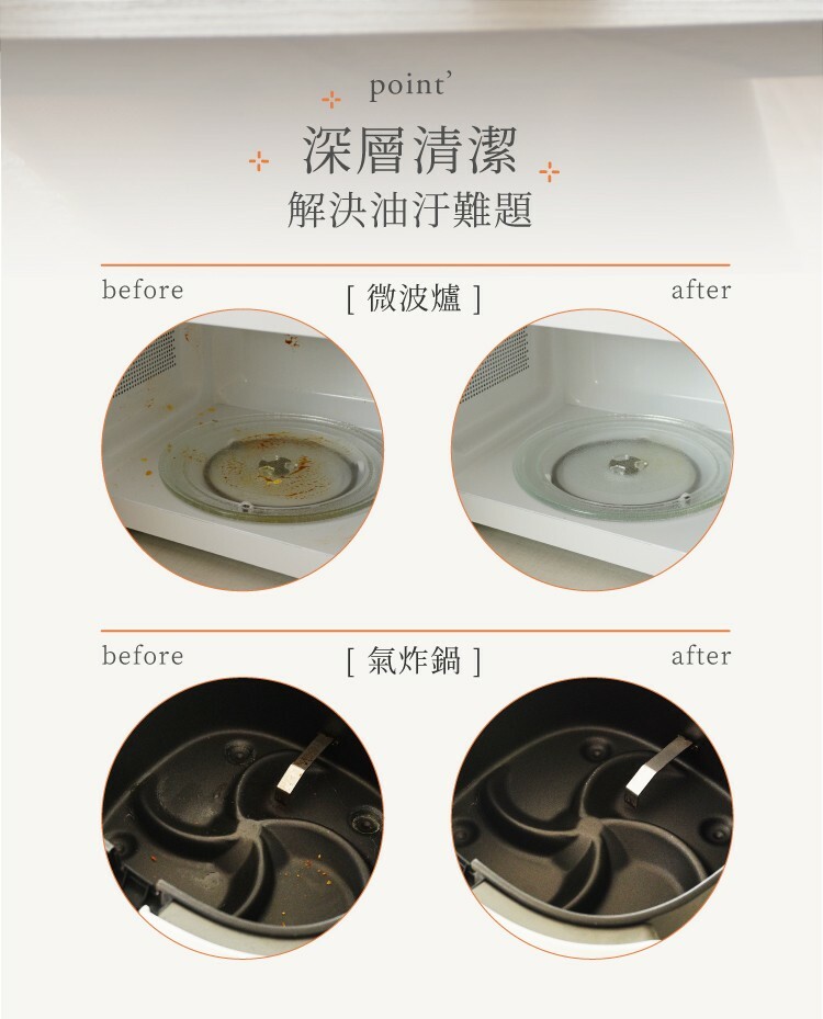 • 不須費力刷洗,輕鬆瓦解黏膩難纏油垢