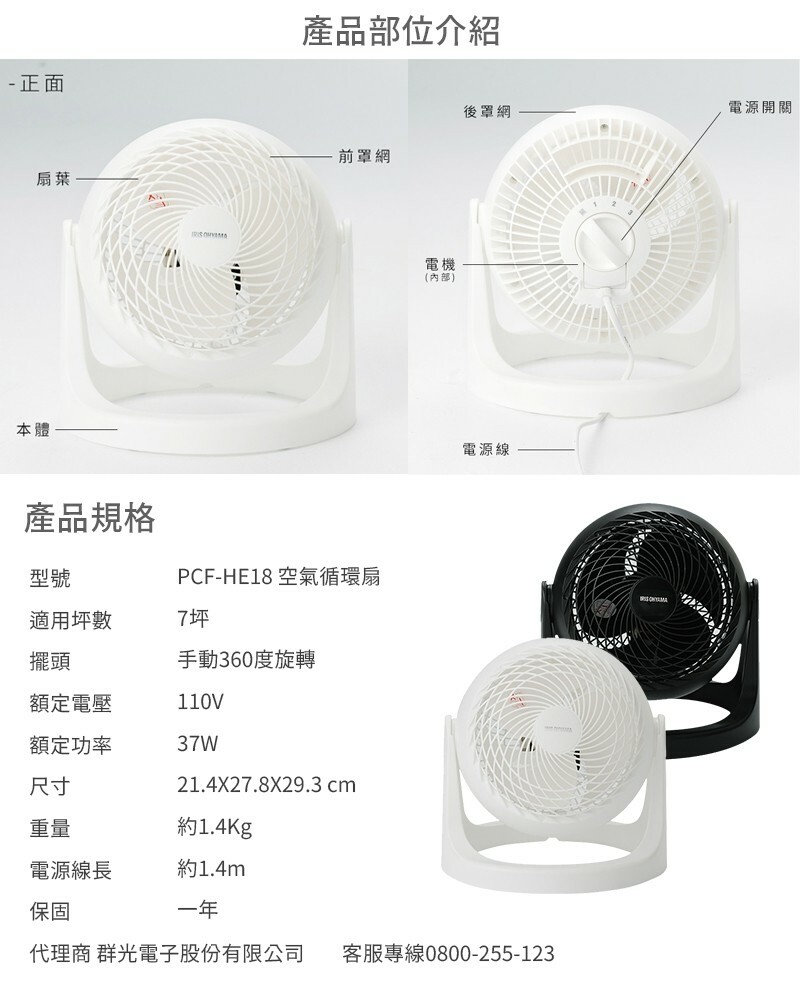 【IRIS OHYAMA】PCF-HE18 空氣循環扇 適用7坪