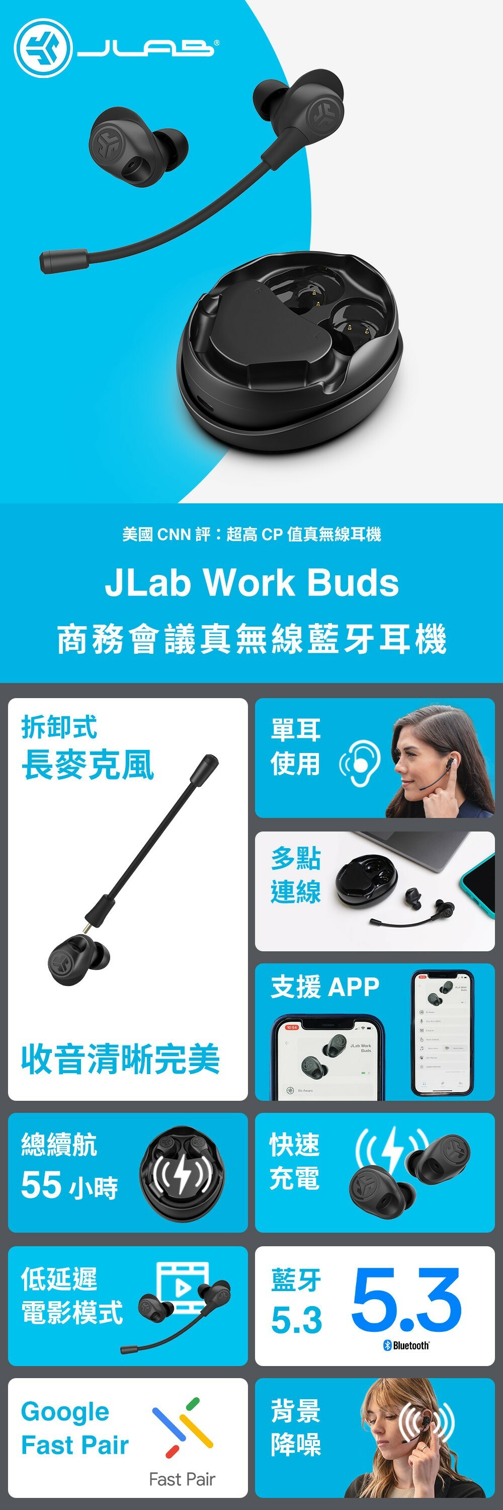 【JLab】 Work Buds 商務會議真無線藍牙耳機