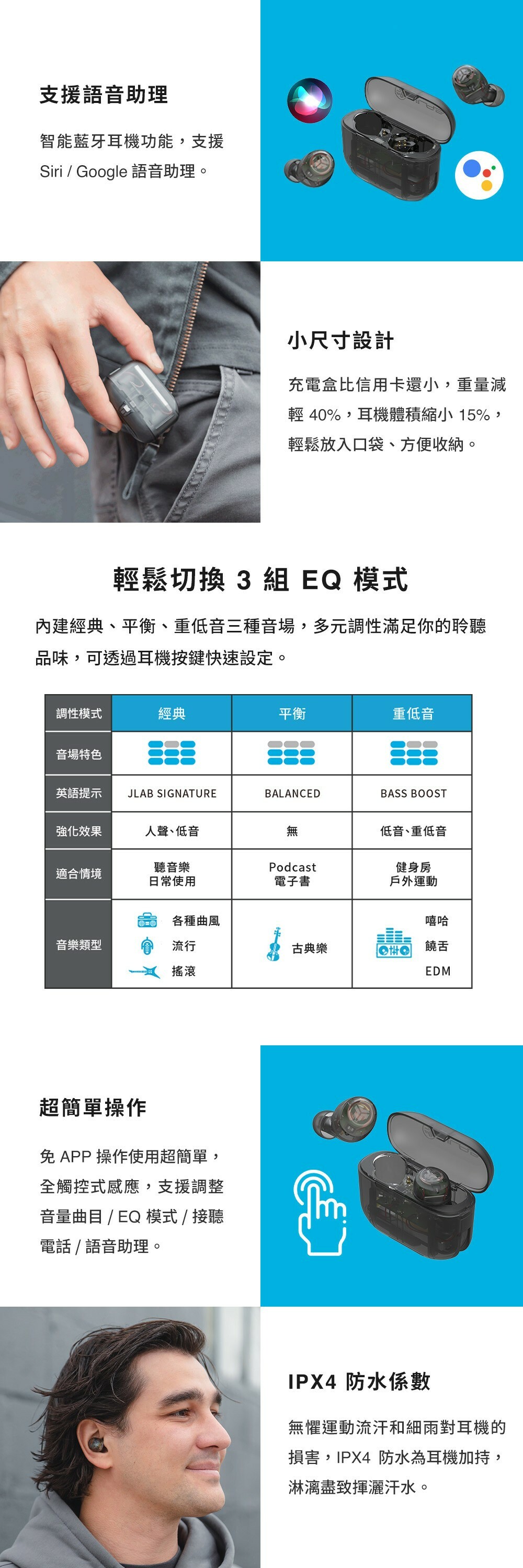 ●耳機重量:3.7g (單耳) / 34.5g(耳機+充電盒)