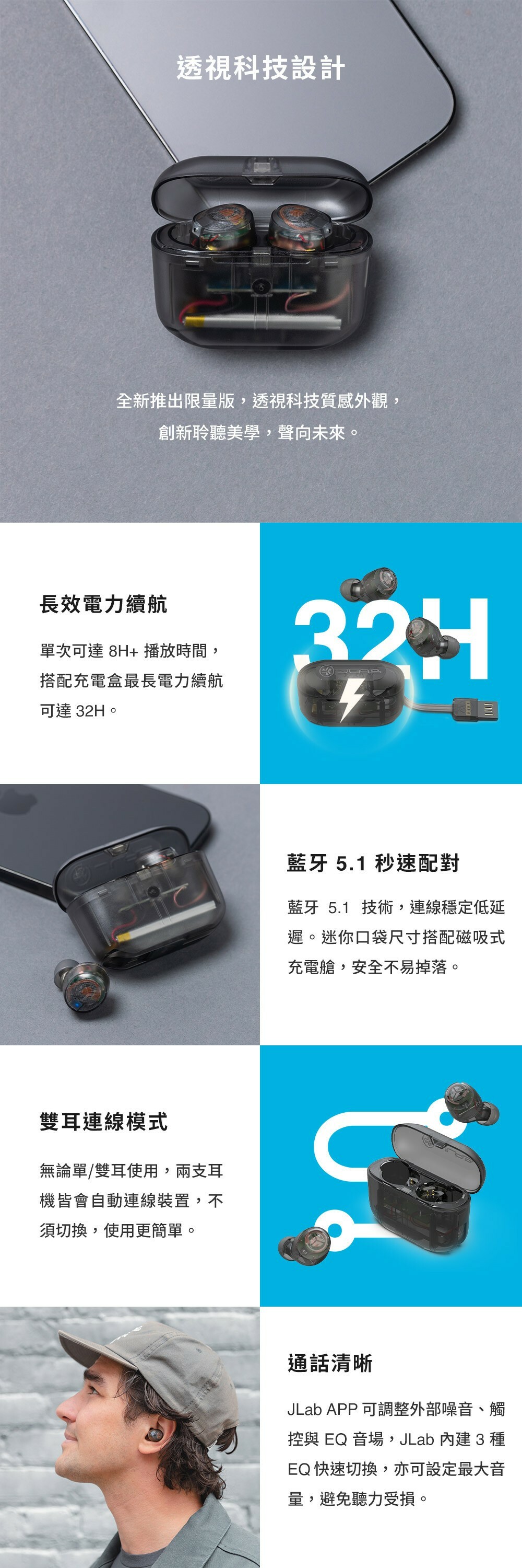 ●耳機電量:單耳8H / 充電盒24H (總共32H)