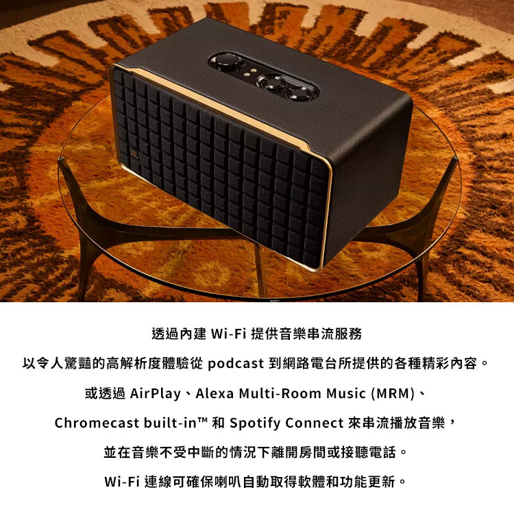●透過內建WI-FI提供音樂串流服務,並且在音樂不受中斷的情況下離開房間或接聽電話