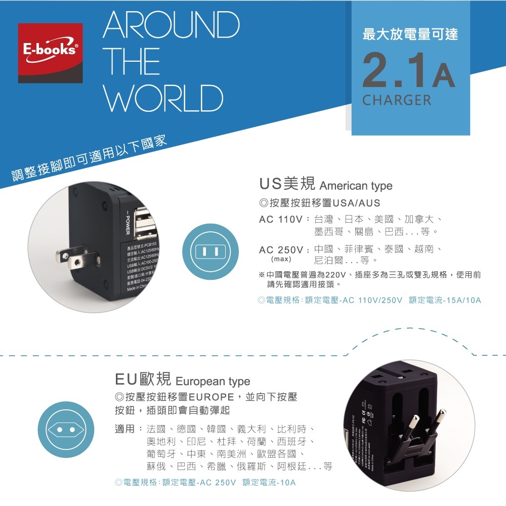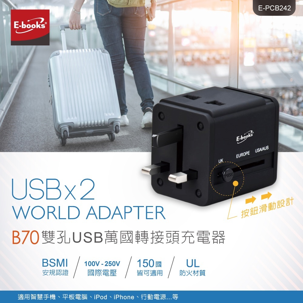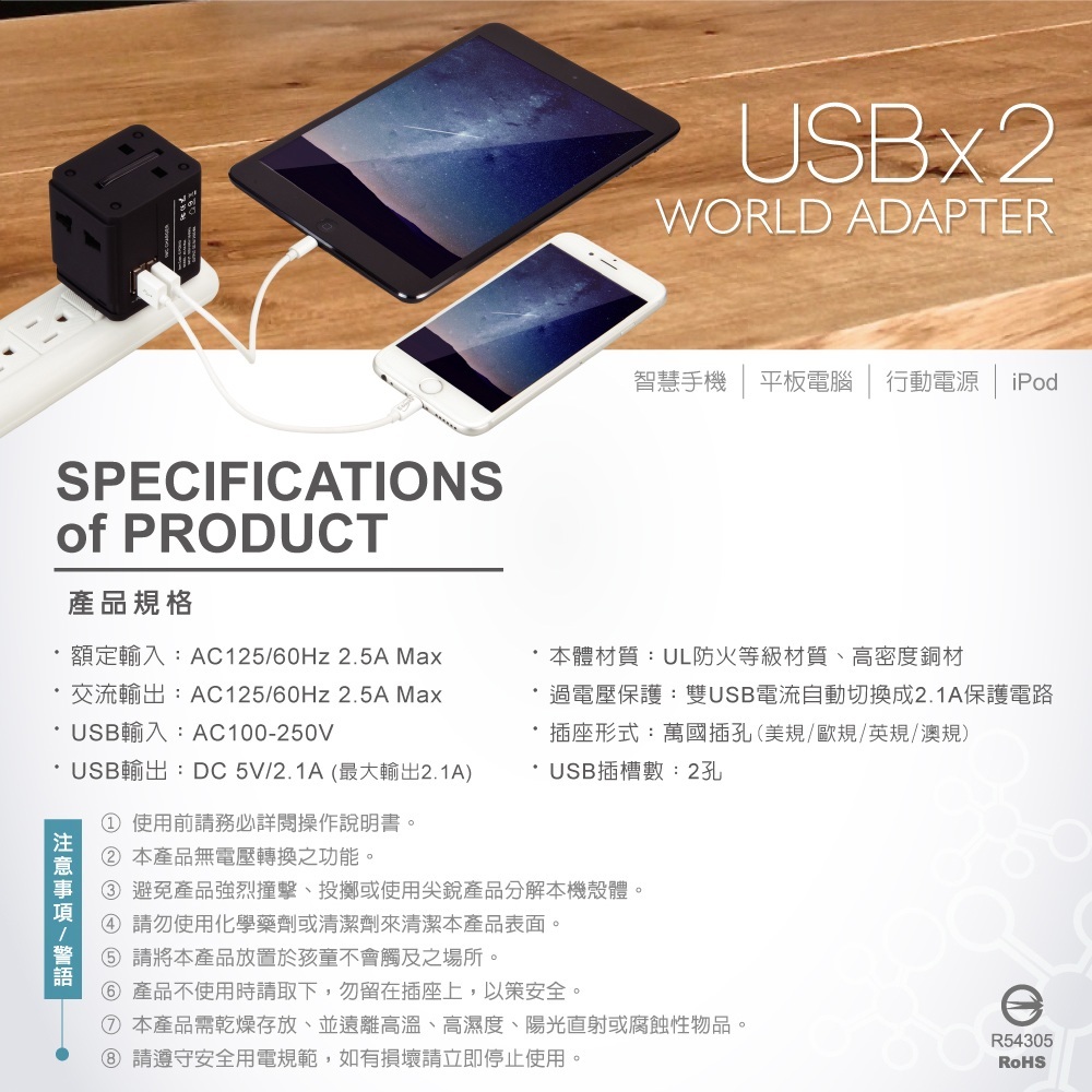 3.【RASTO】B70 雙孔USB萬國旅行轉接頭充電器