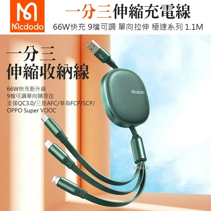 2.【Mcdodo麥多多】一分三伸縮收納充電線