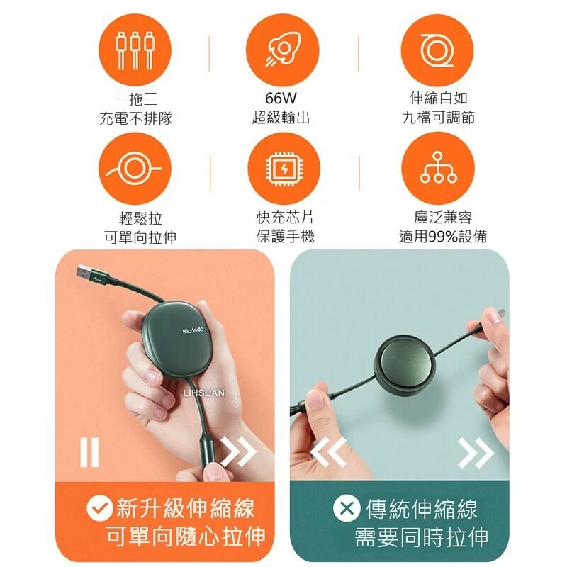 4.【Mcdodo麥多多】一分三伸縮收納充電線
