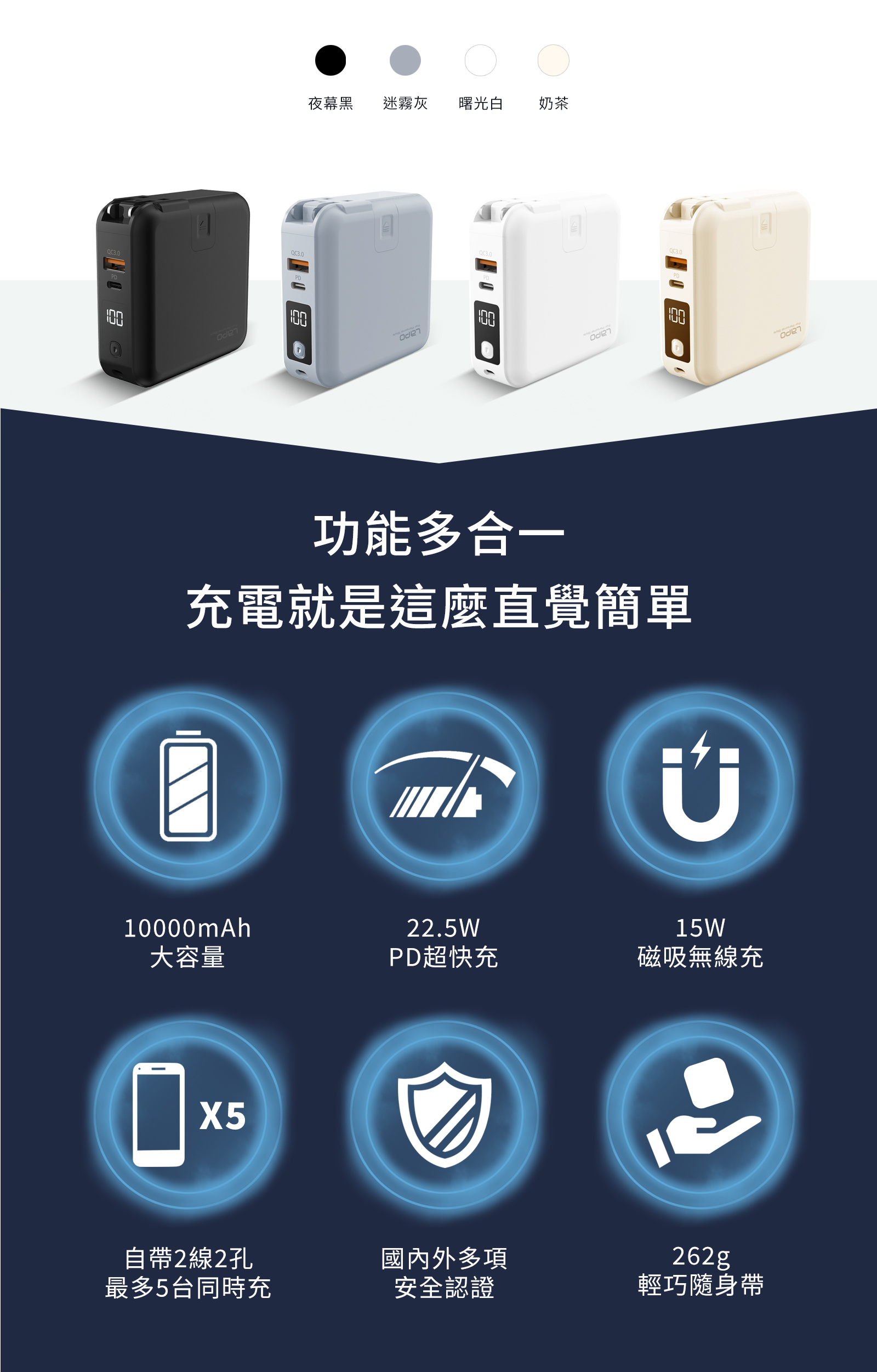 1.【LAPO】多功能無線充電快充行動電源 五合一行動電源