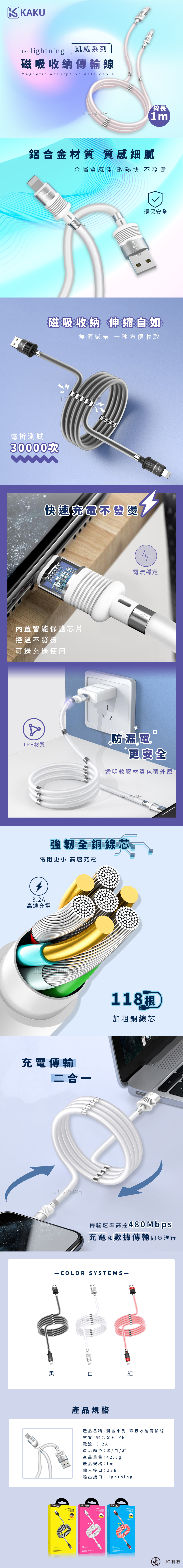 清倉優惠【KAKU】凱威系列-磁吸收納傳輸線(IOS/Micro/Type-C)