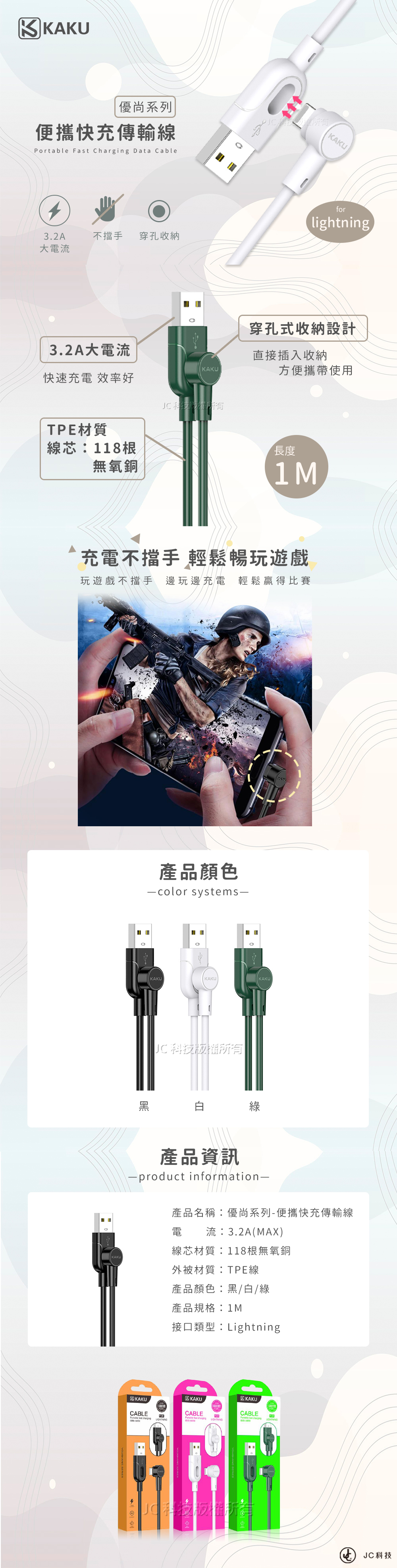 清倉優惠【KAKU】優尚系列-便攜快充傳輸線(Lightning/Type-C/Micro)