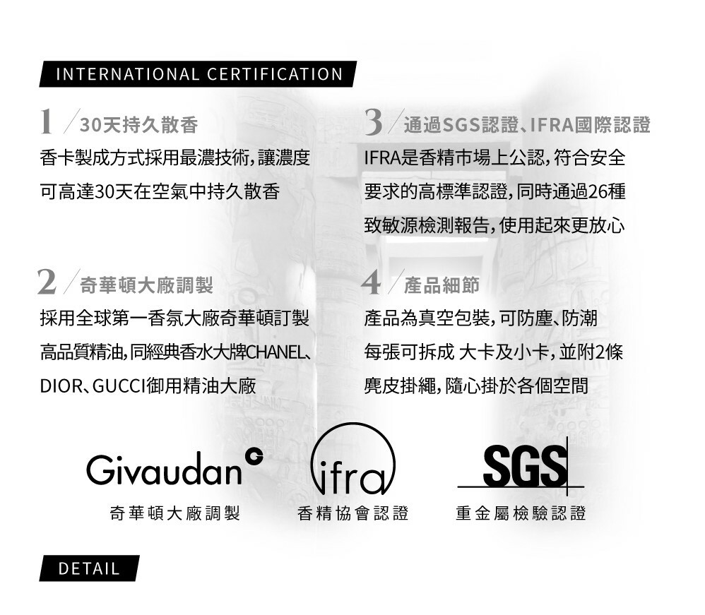 單入包裝:香薰卡x1張、麂皮繩x2條