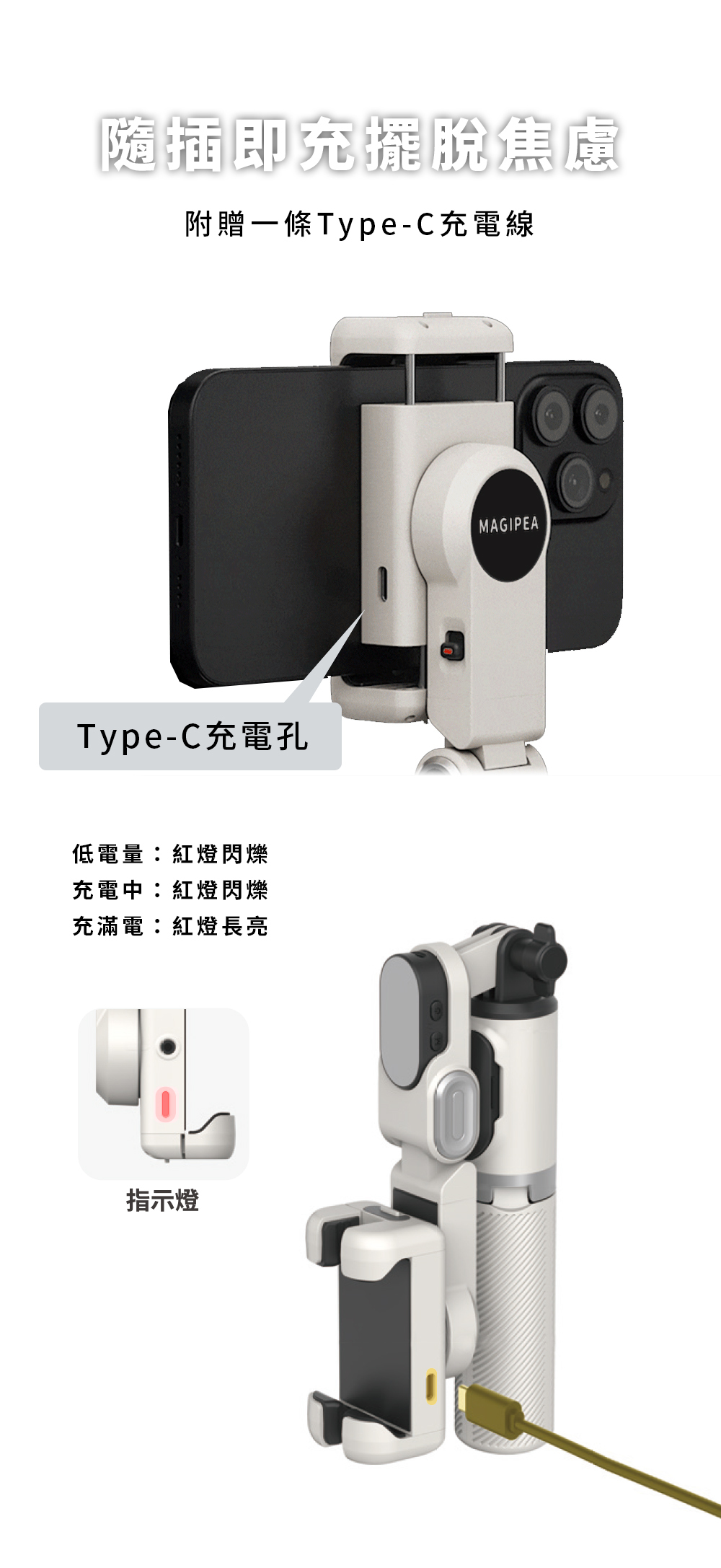 ● 附贈磁吸式迷你補光燈,光源不足或夜間拍攝也不怕
