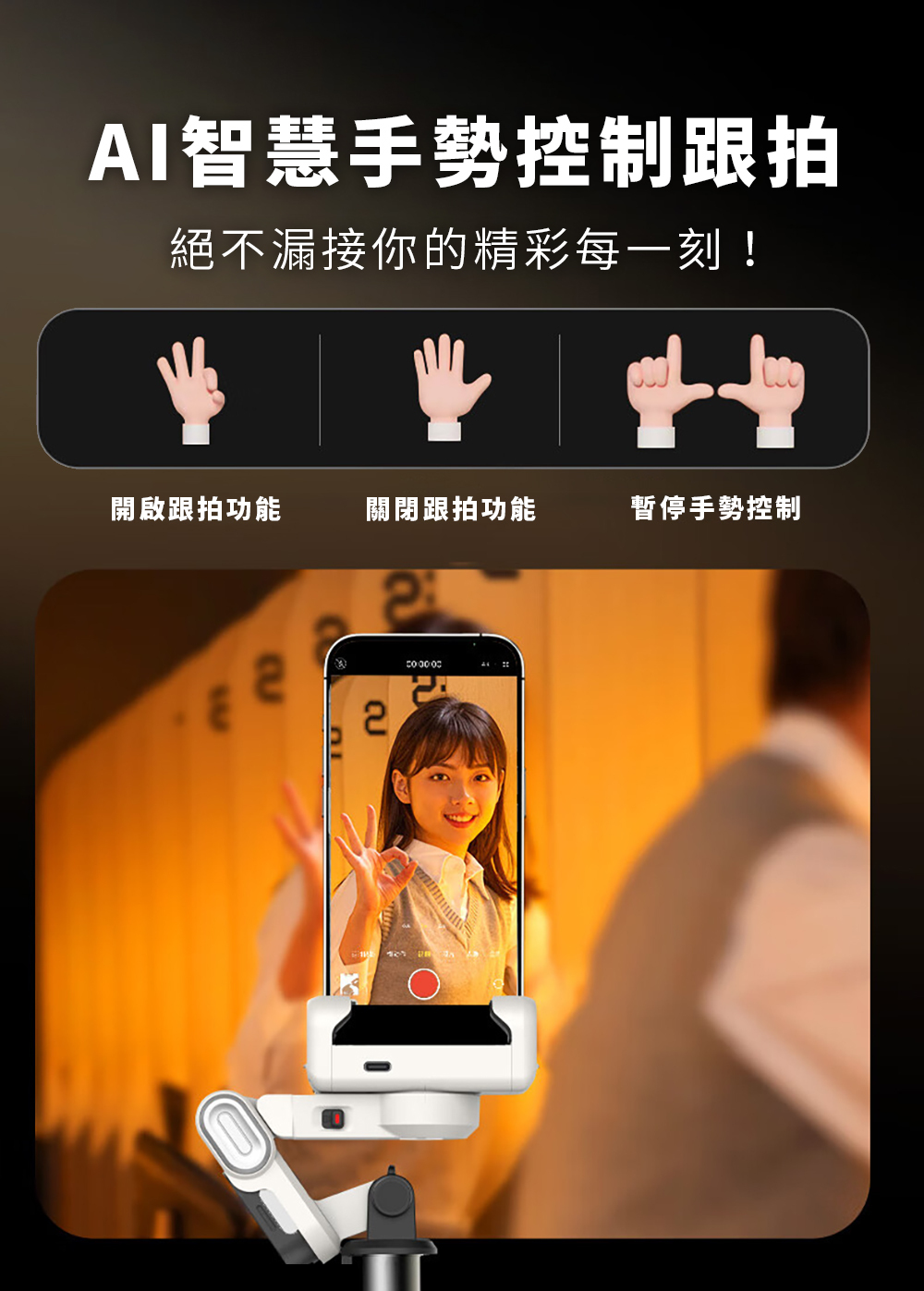 ●支持手勢控制,360度無死角環繞AI跟拍