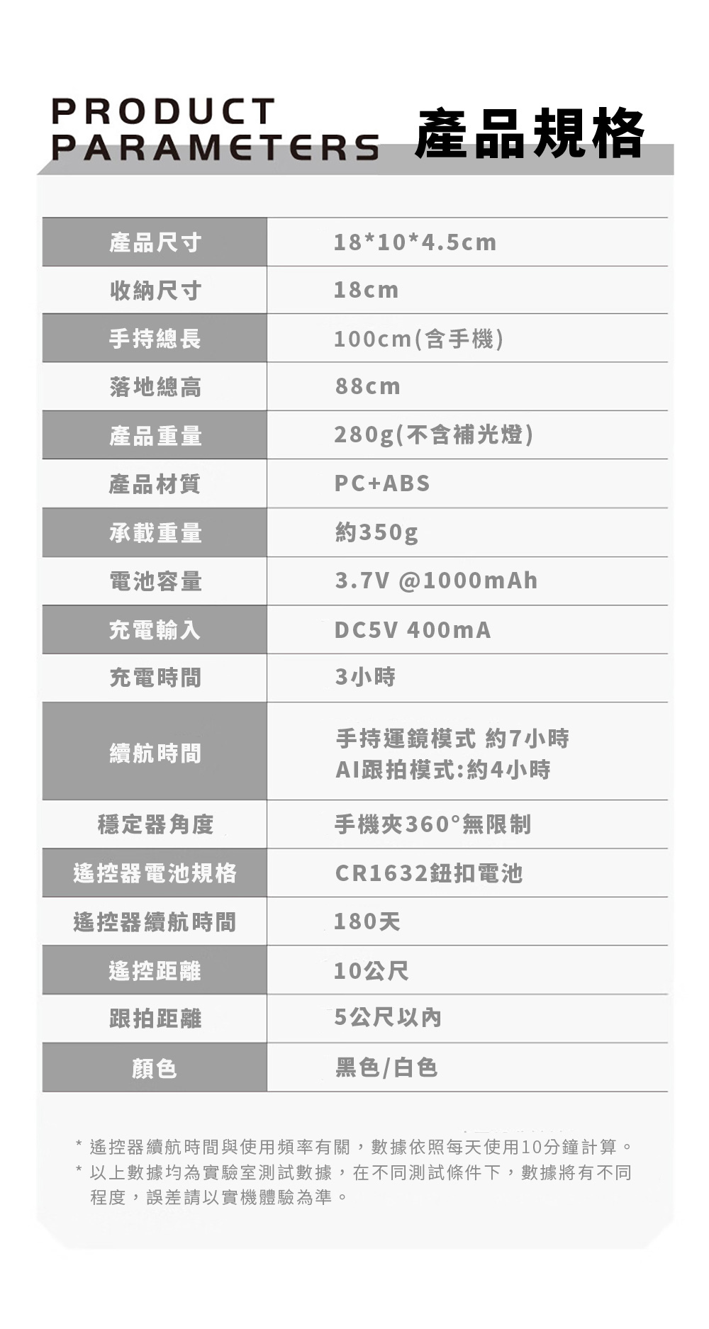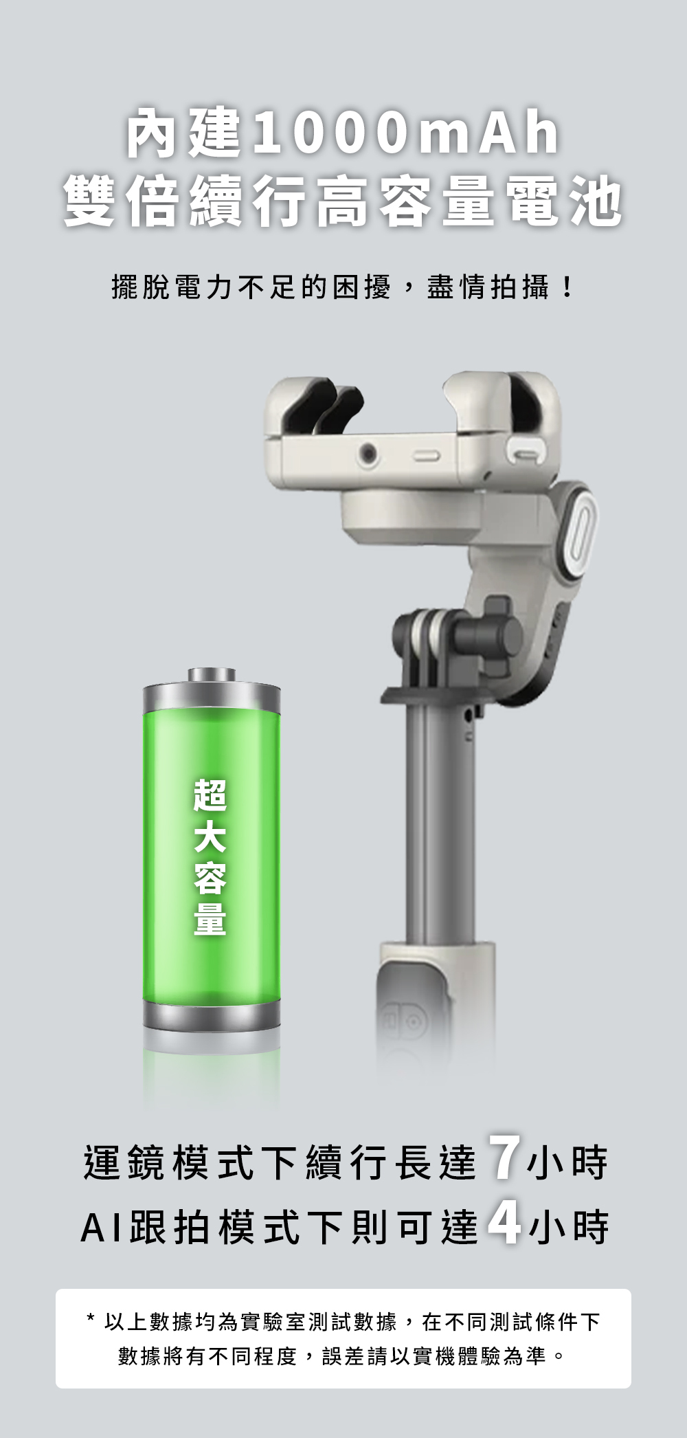 ●穩定器電池容量: 1000 mAh