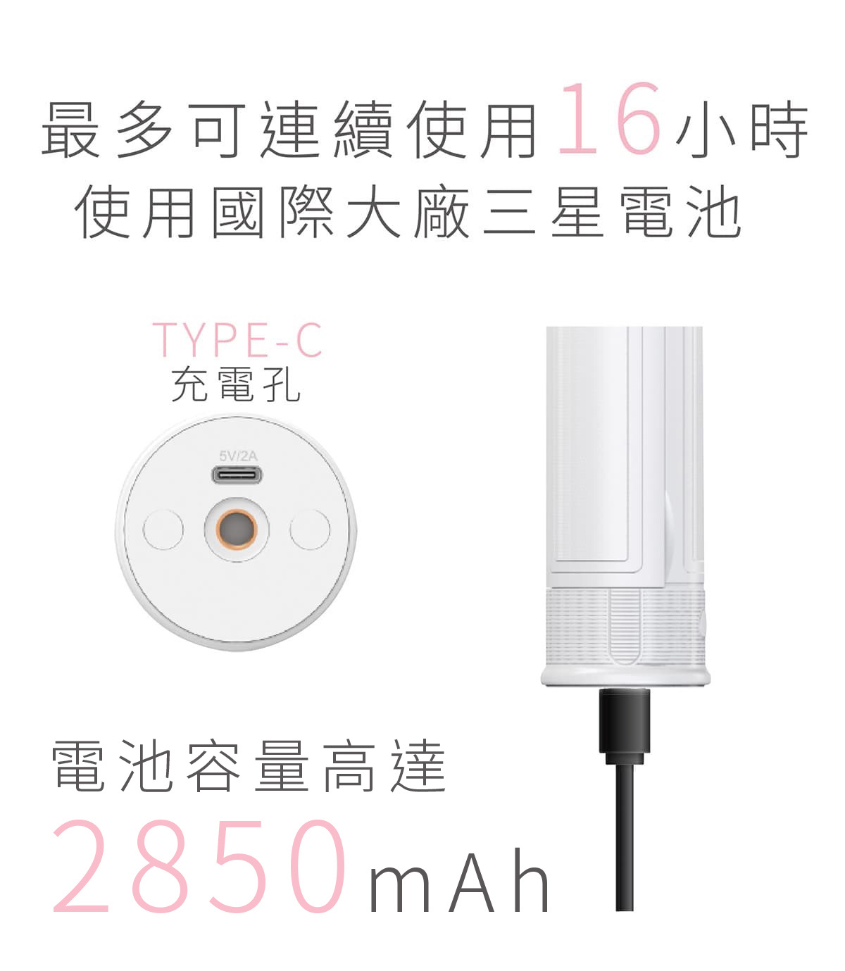 ●2865mAh 超長使用時間 最長可達16小時