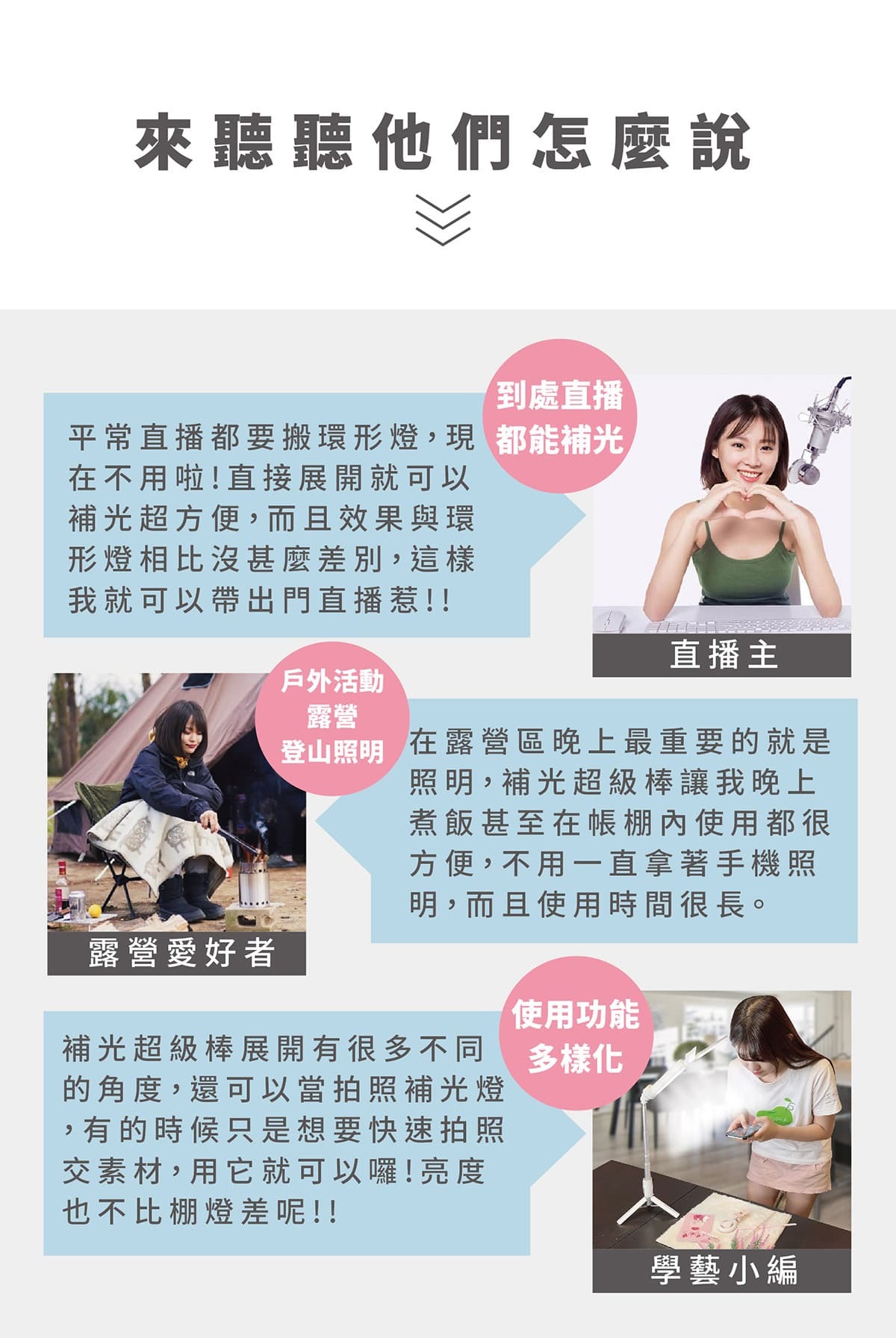 ●新形態補光燈,直播補光、美容美甲補光、露營戶外活動照明、攝影棚燈
