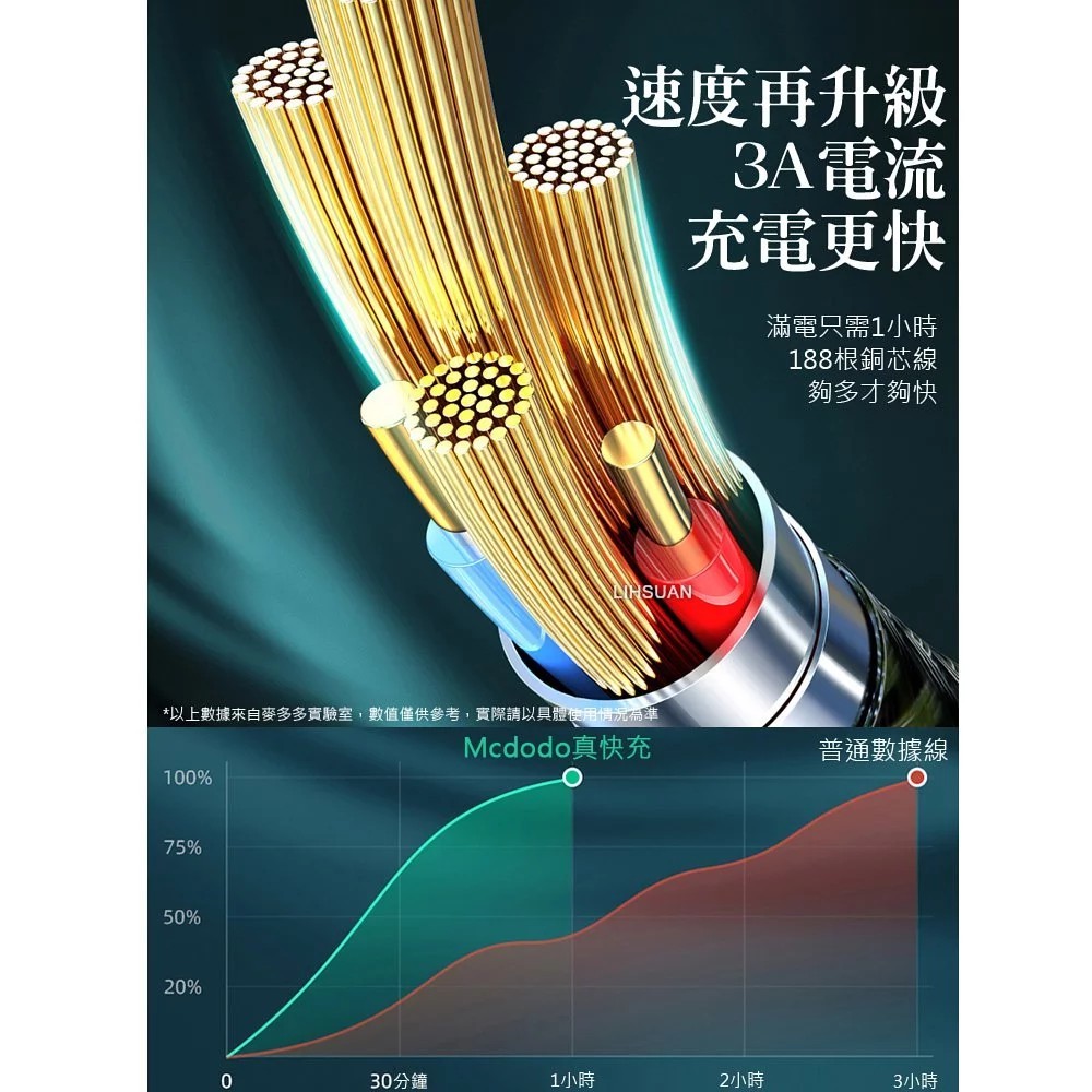 .速度再升級3A電流,充電更快,188根銅芯線,夠多才夠快