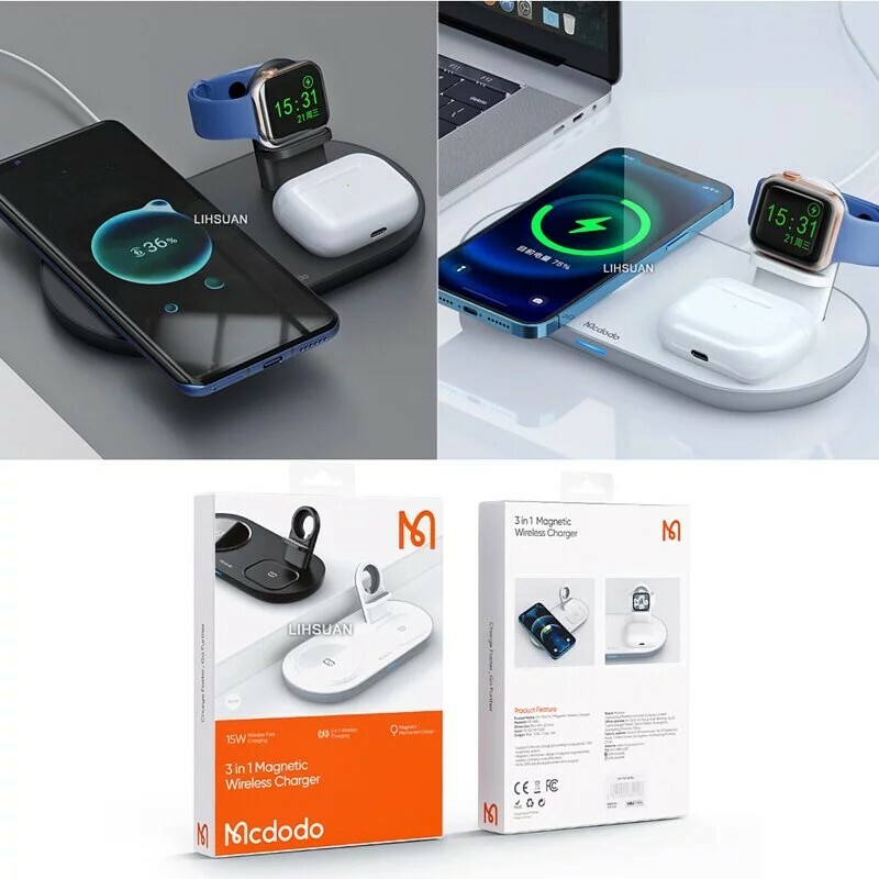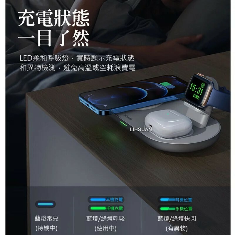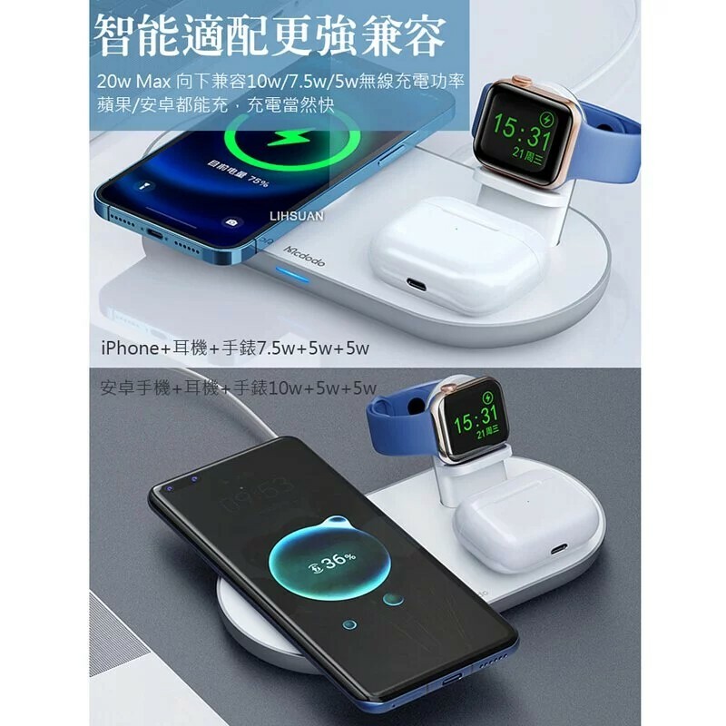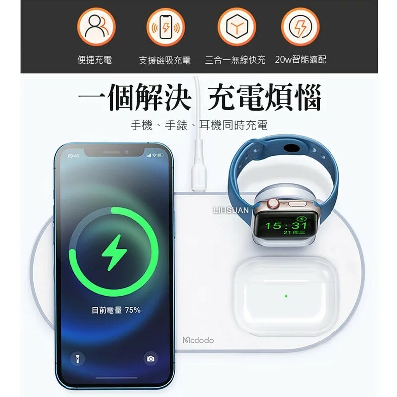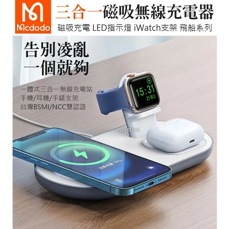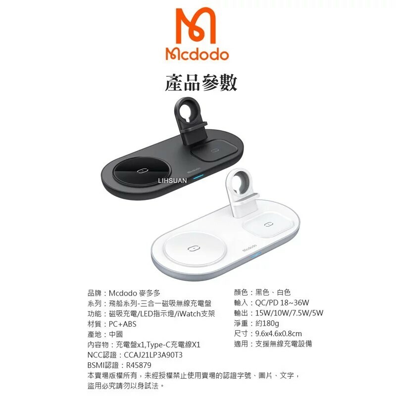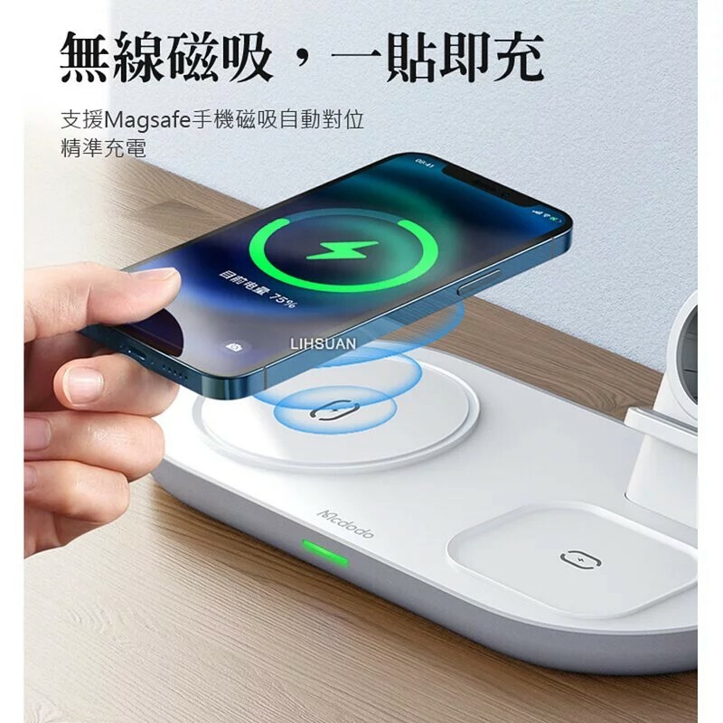 【Mcdodo 麥多多】三合一 手機無線充電盤磁吸充電器支架 LED指示燈 飛船系列