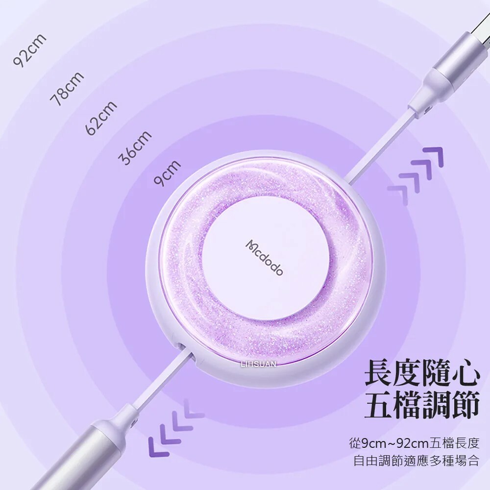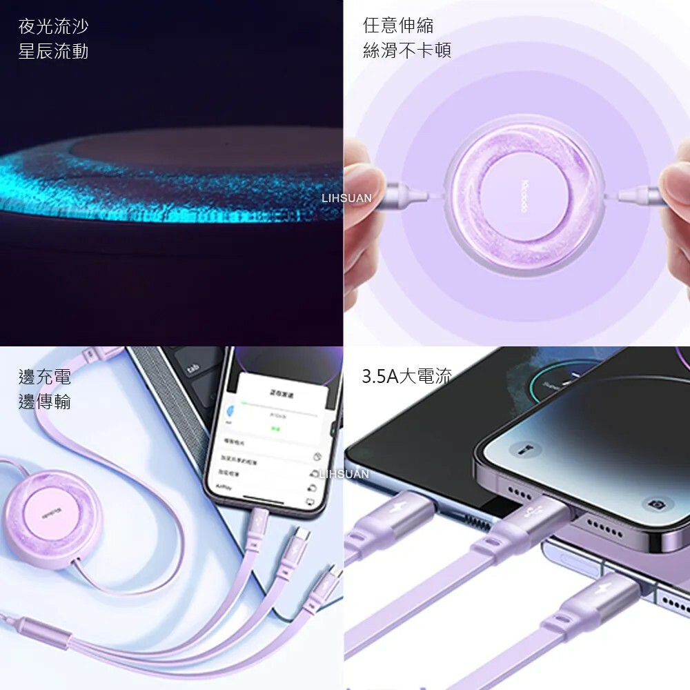 ●功能:充電、傳輸、五檔伸縮、夜光流沙