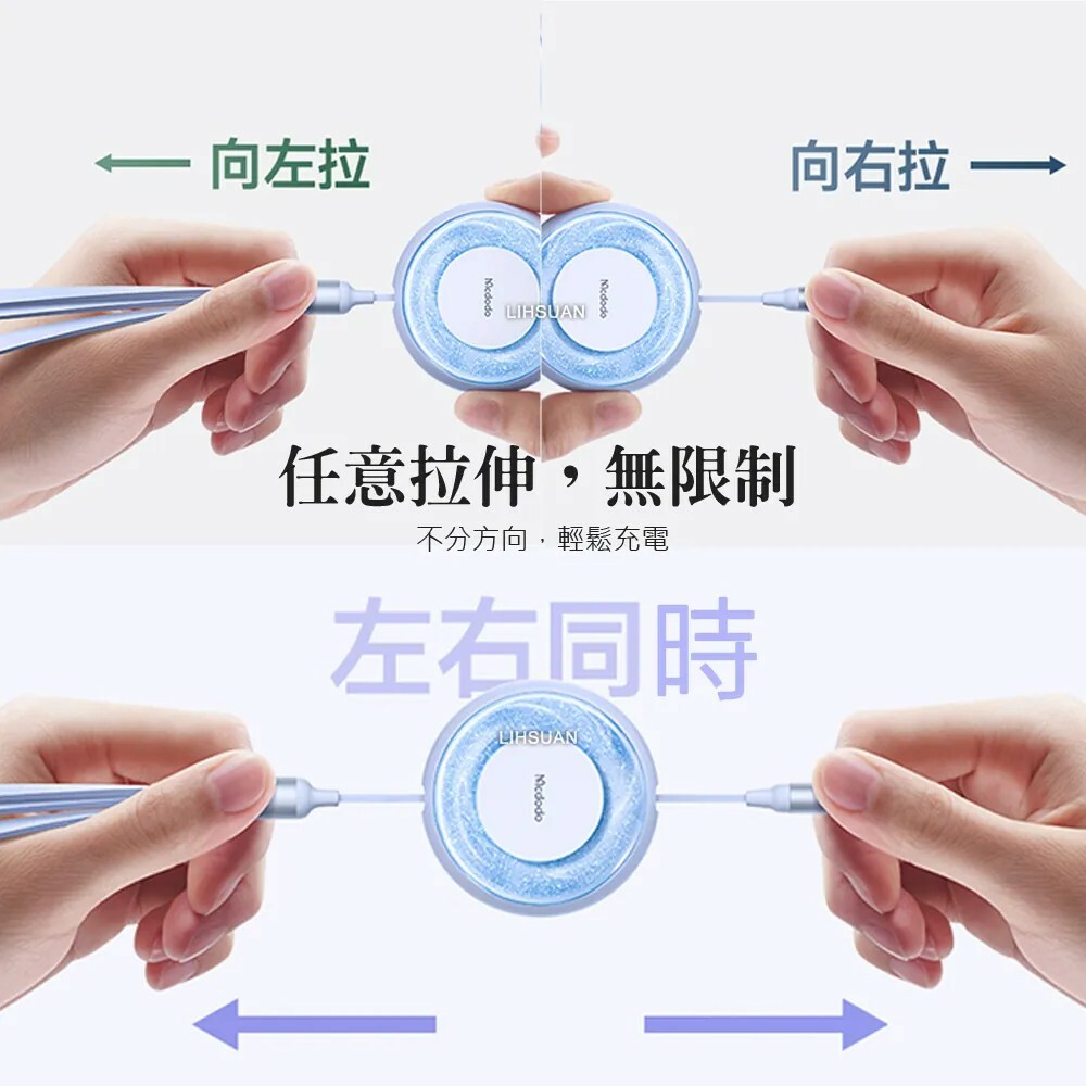 ●任意拉伸無限制,可單向、雙向、不分方向,輕鬆充電