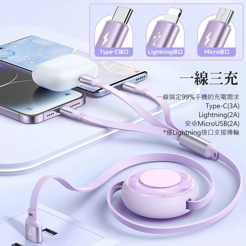 ●一分三5檔伸縮充電線