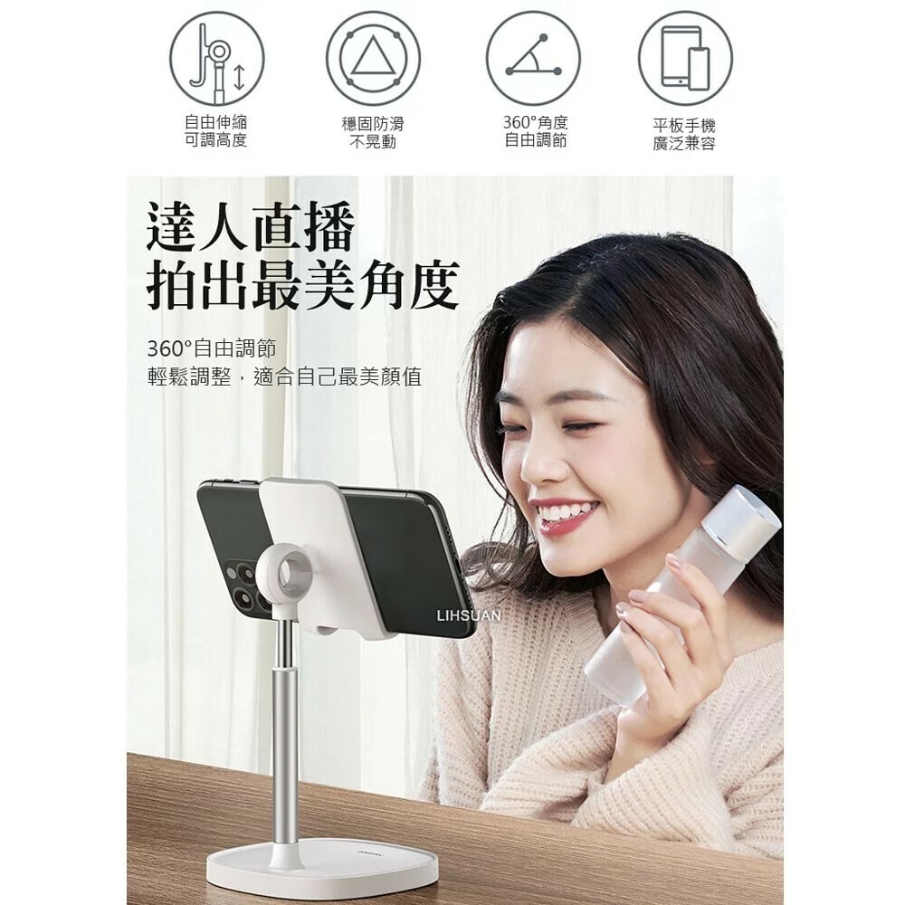 ●360°可伸縮,桌上型手機/平板支架