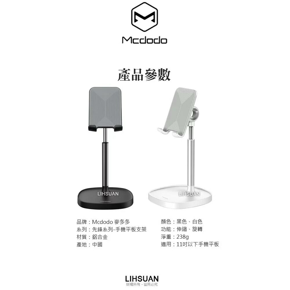 【Mcdodo 麥多多】平板/手機支架桌上型伸縮旋轉直播追劇-先鋒系列