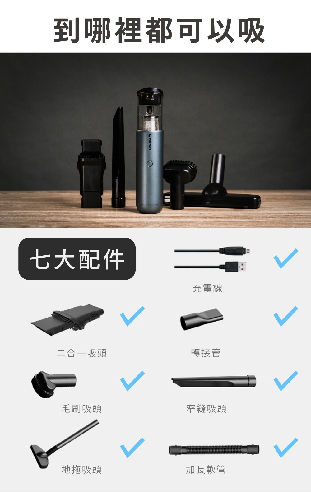 ●附7大配件-4種吸頭任你搭,多變萬用。