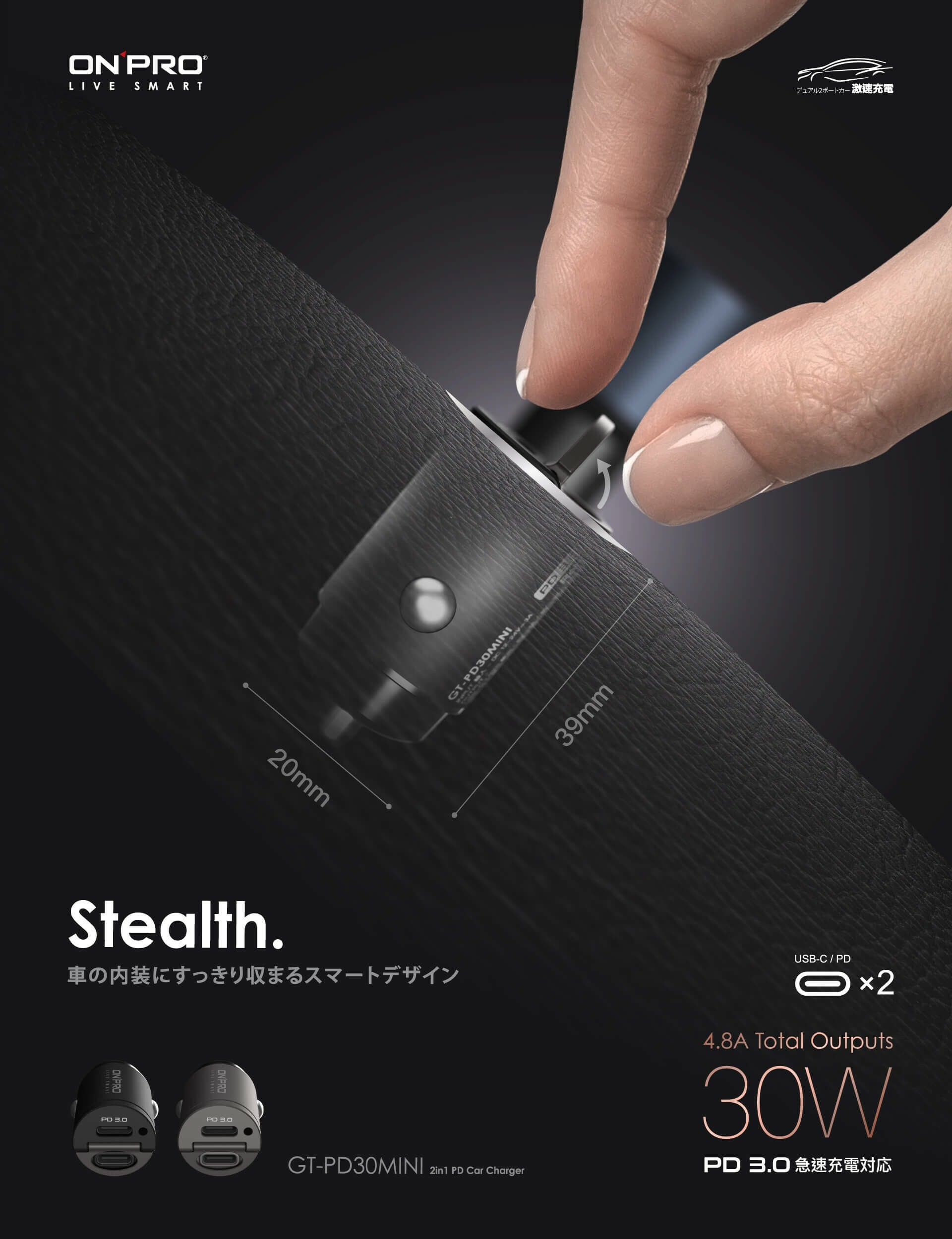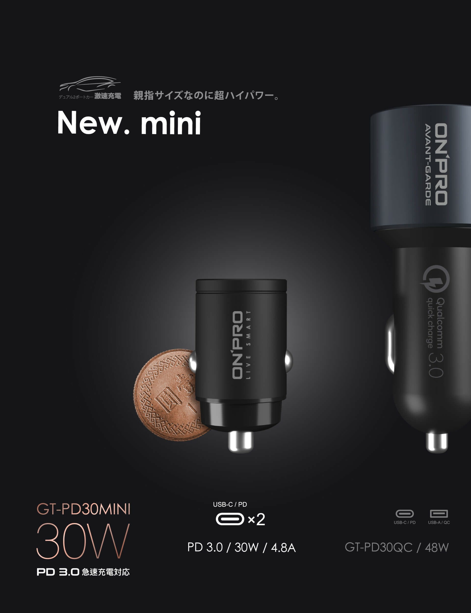 【ONPRO】GT-PD30MINI 30W PD3.0 快充車用充電器