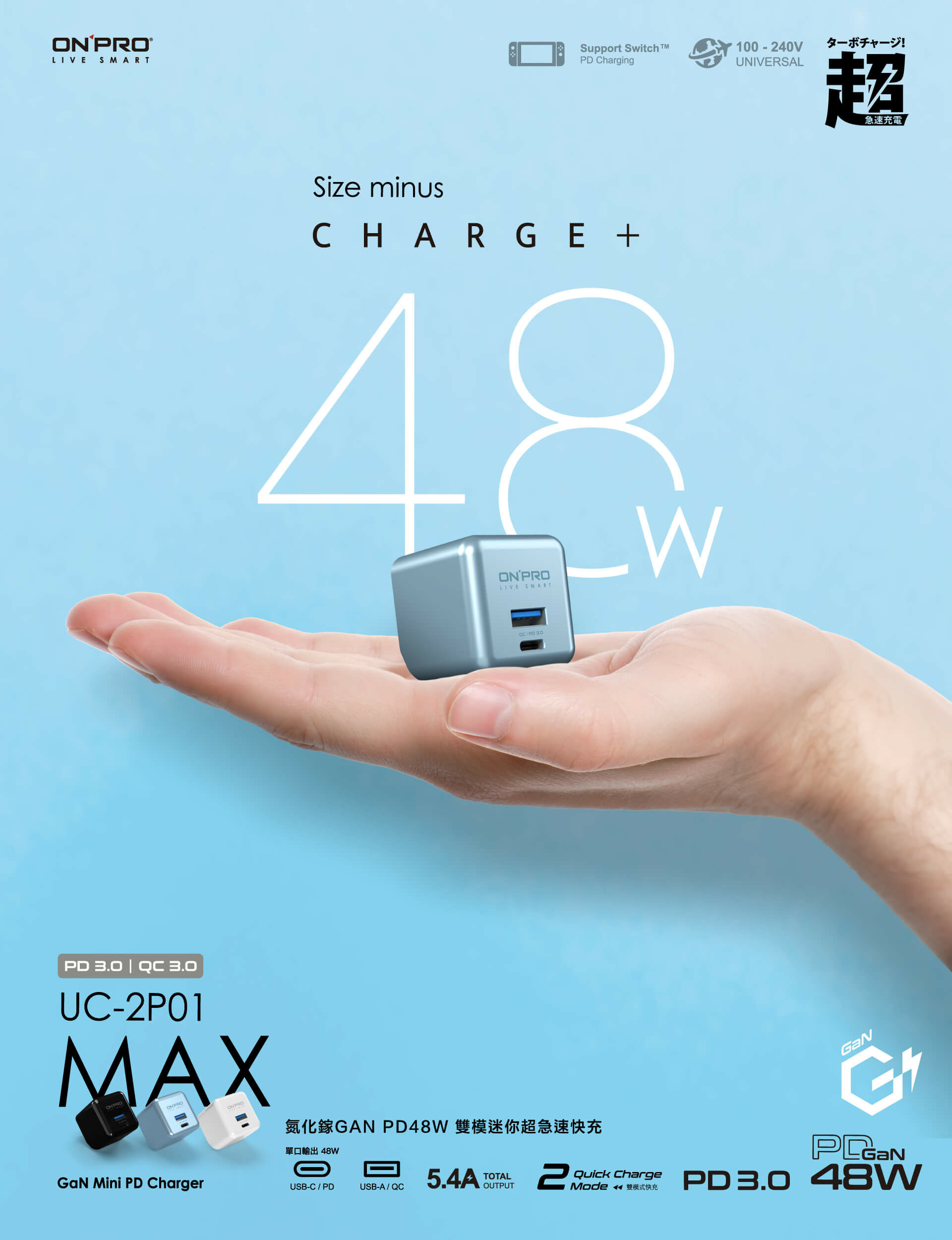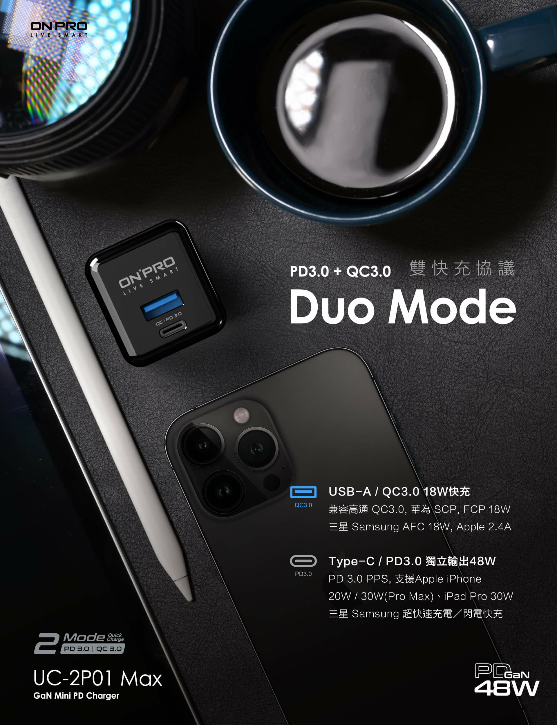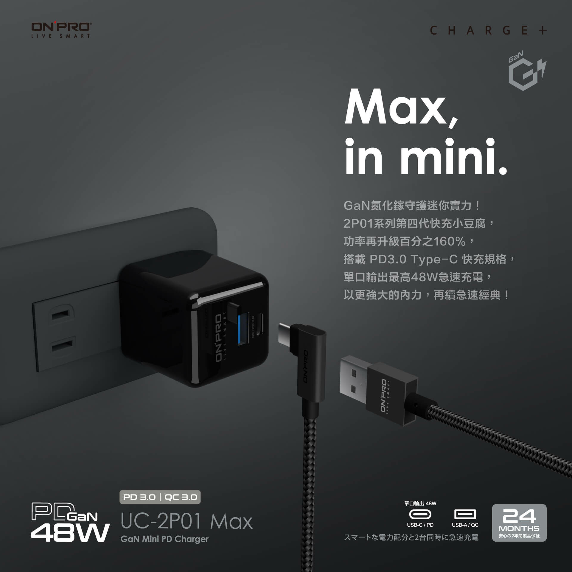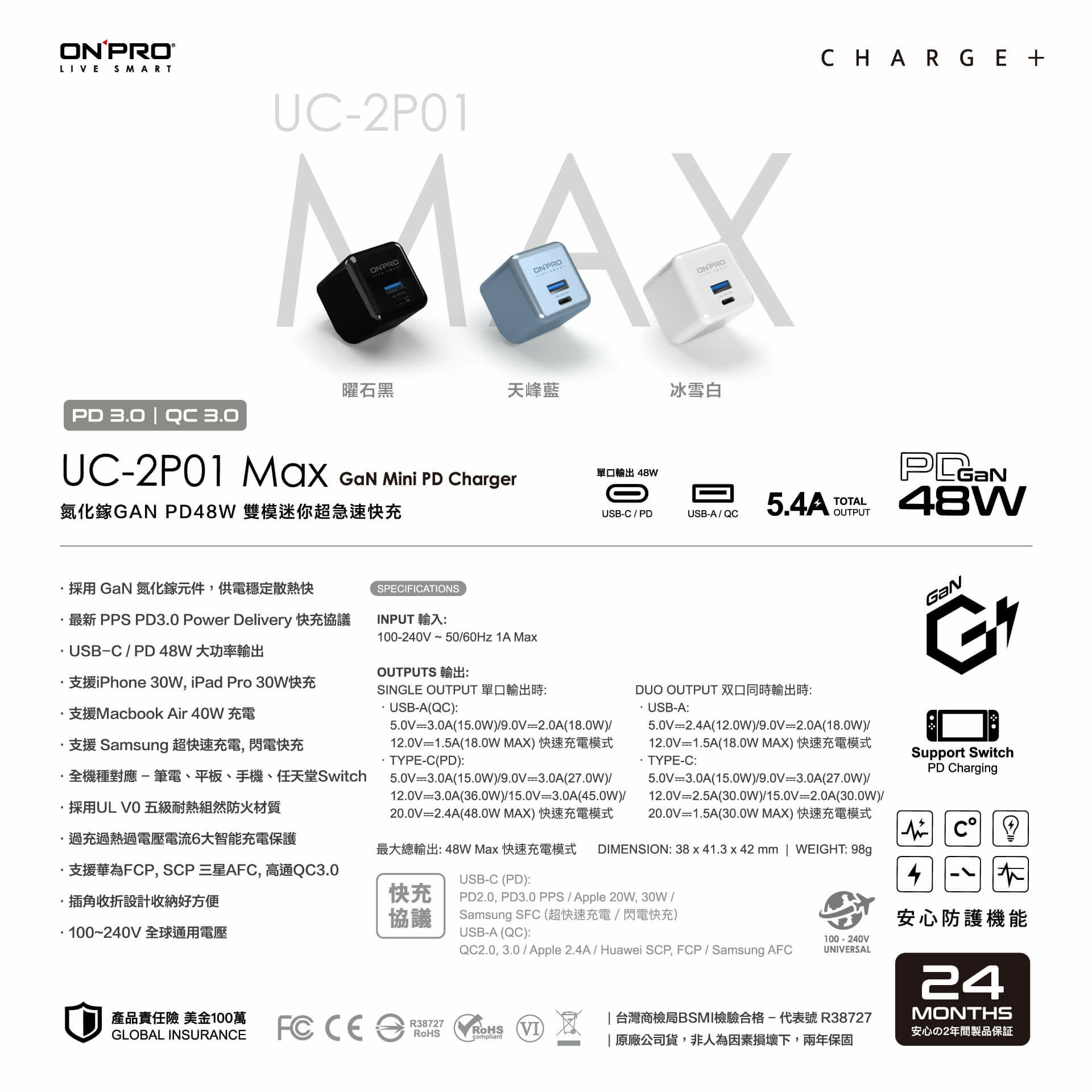 【ONPRO】UC-2P01 Max 氮化鎵GaN PD48W 雙孔快充頭