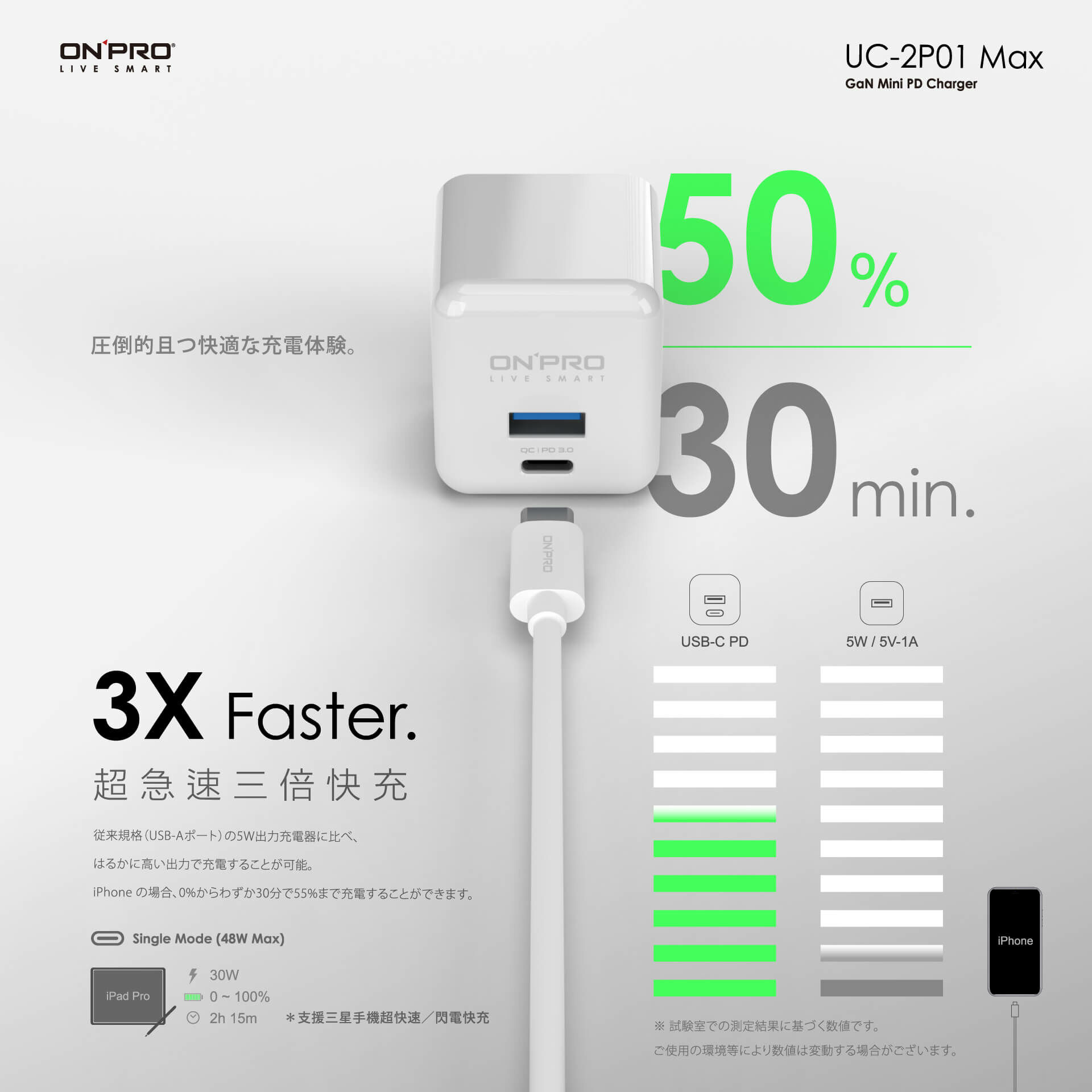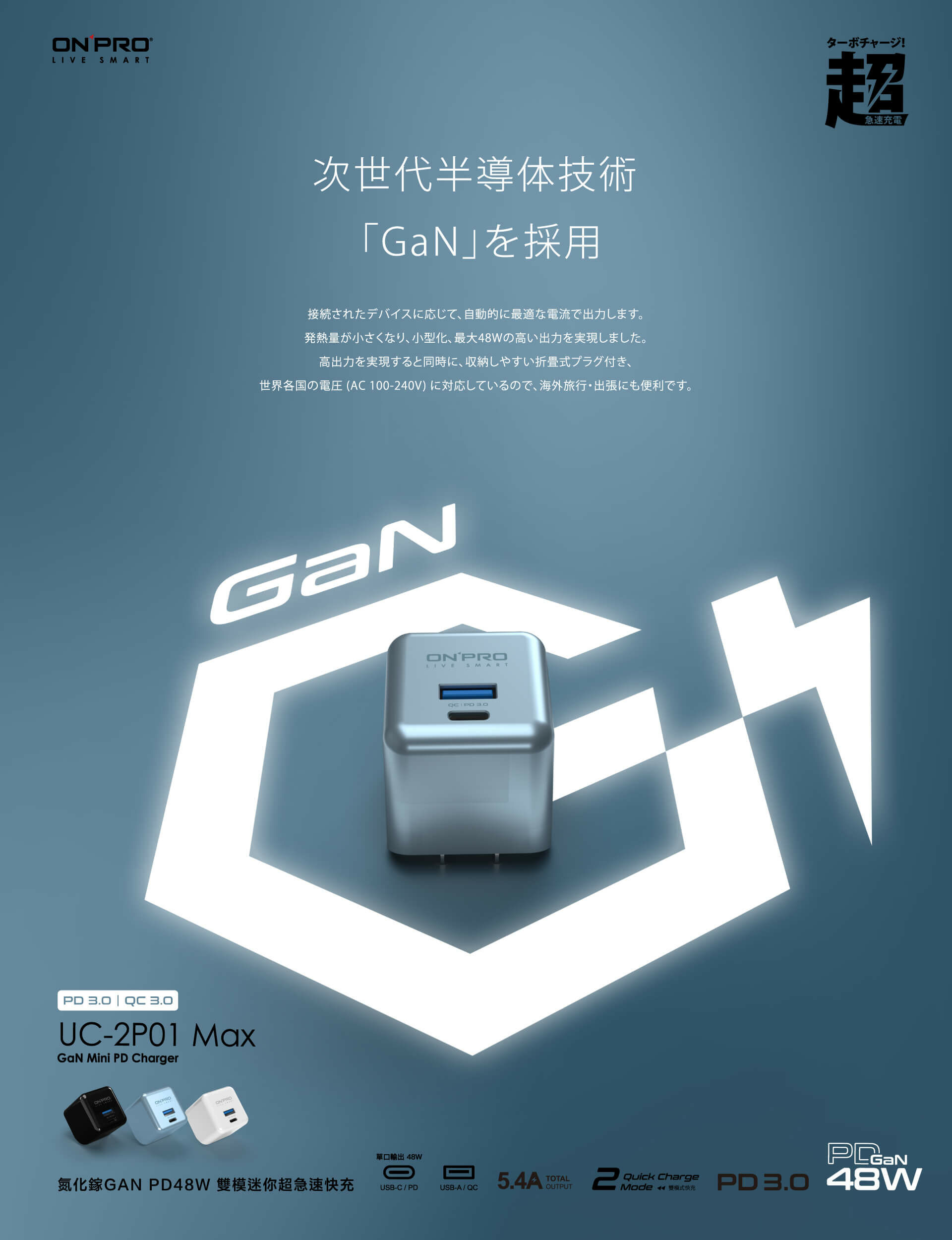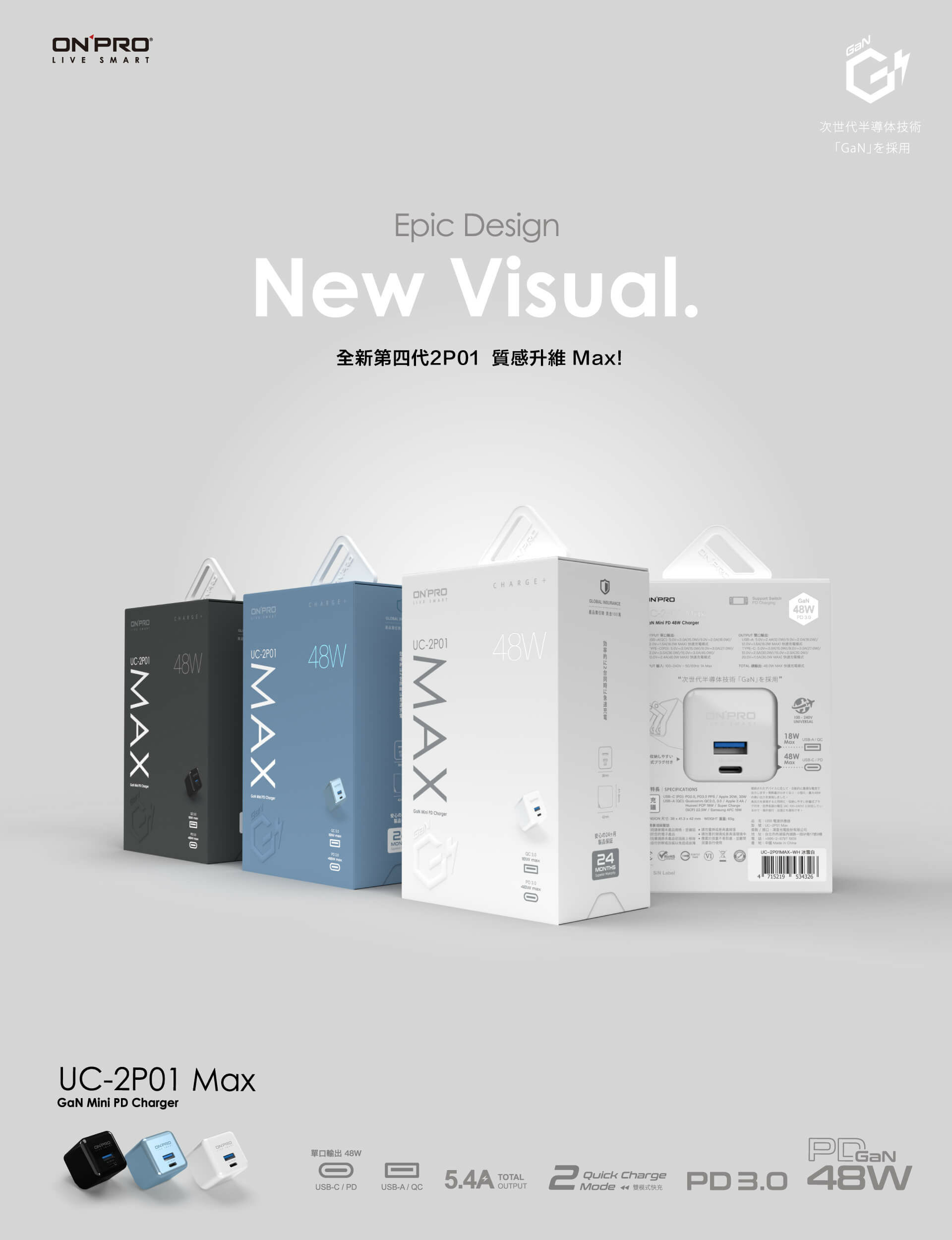 【ONPRO】UC-2P01 Max 氮化鎵GaN PD48W 雙孔快充頭