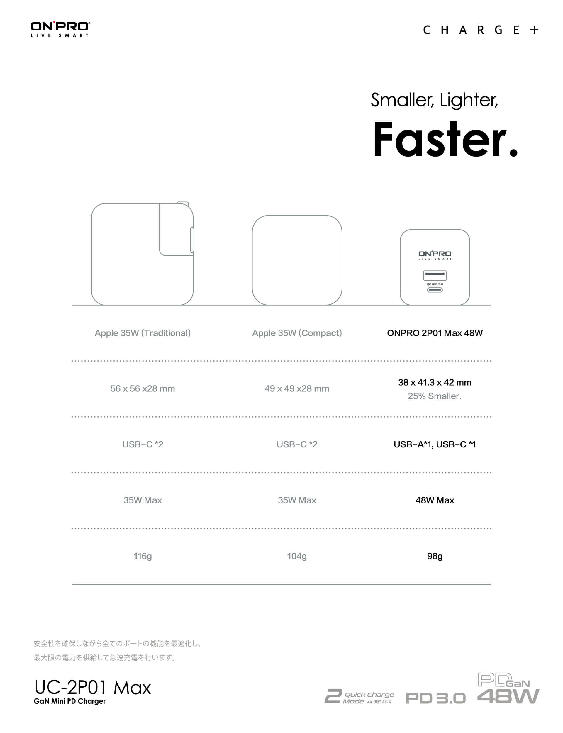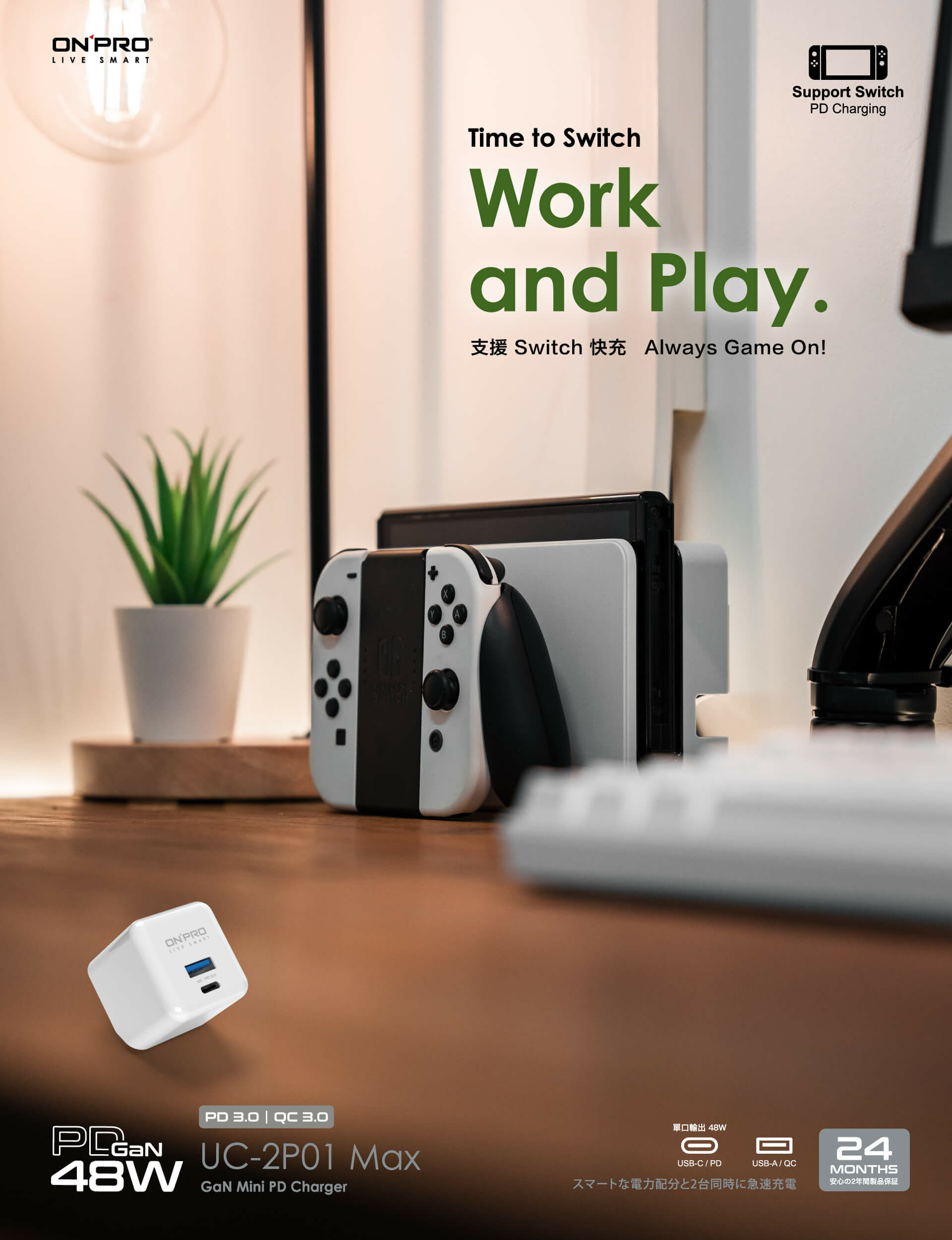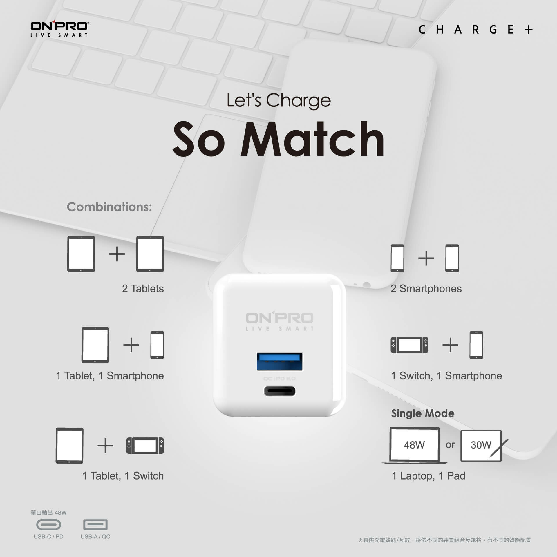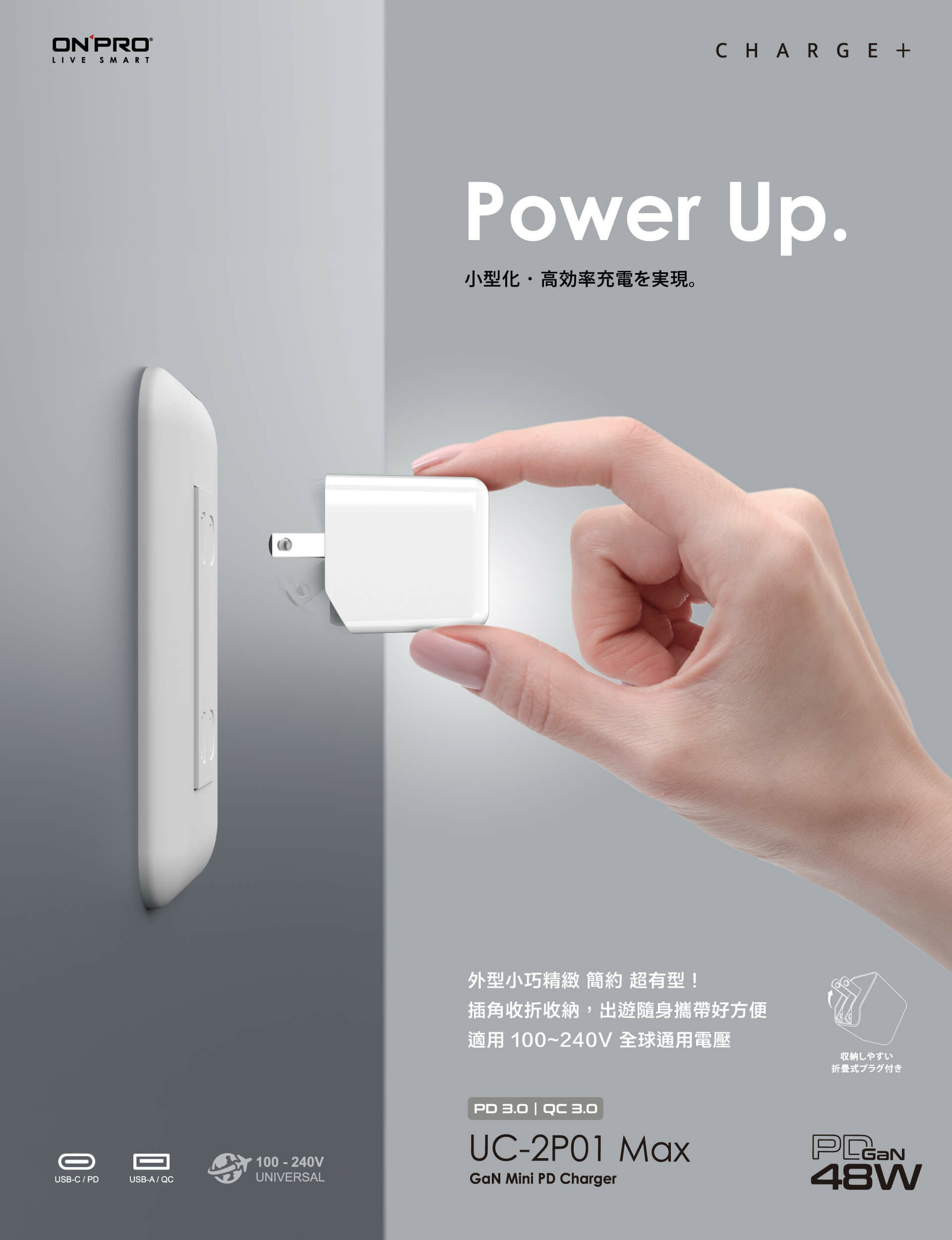 【ONPRO】UC-2P01 Max 氮化鎵GaN PD48W 雙孔快充頭