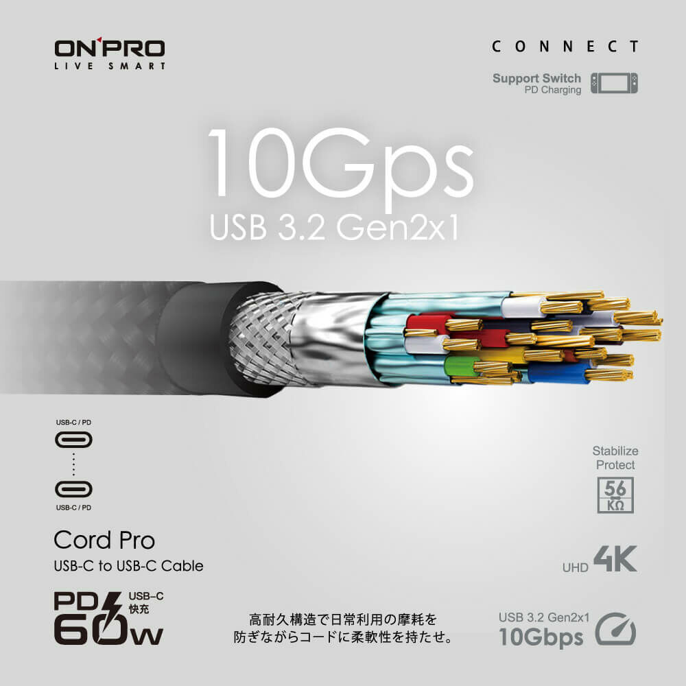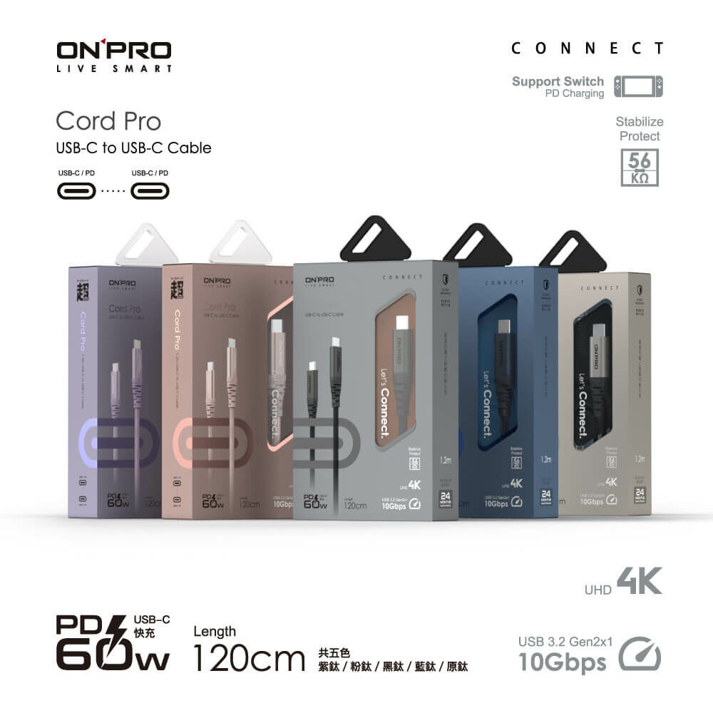 【ONPRO】Cord Pro USB-C to C PD60W 快充傳輸線 120cm