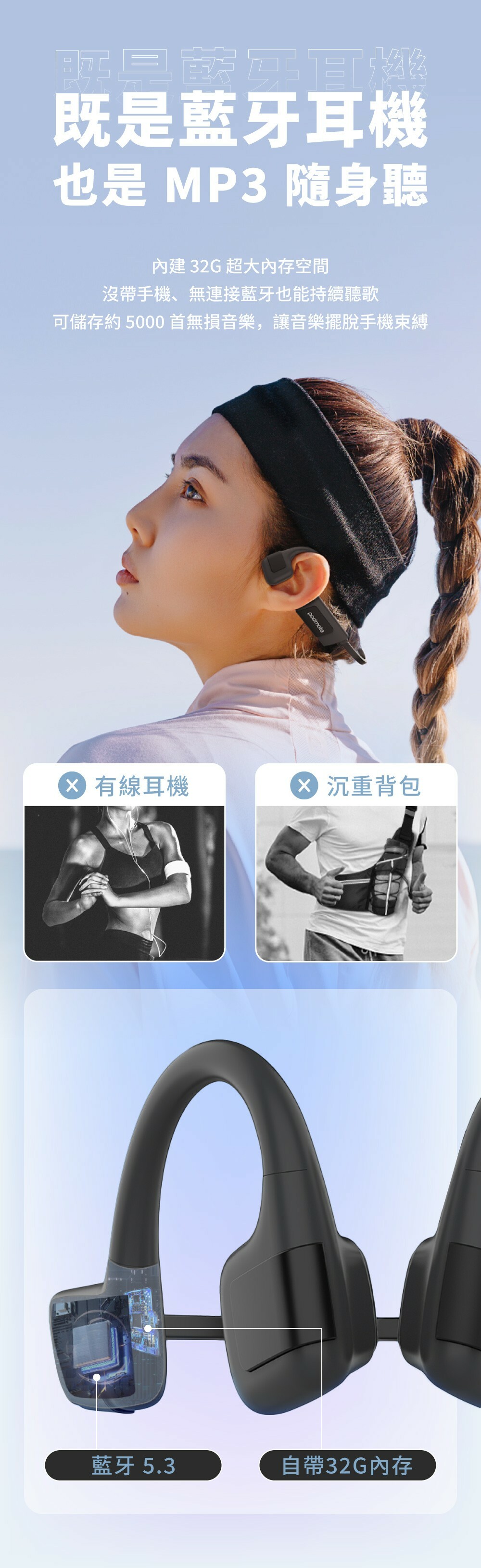 清倉優惠【PaMu】S36 骨傳導游泳藍牙耳機 2色