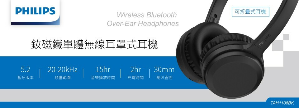 【PHILIPS飛利浦】釹磁鐵單體無線耳罩式耳機 TAH1108BK