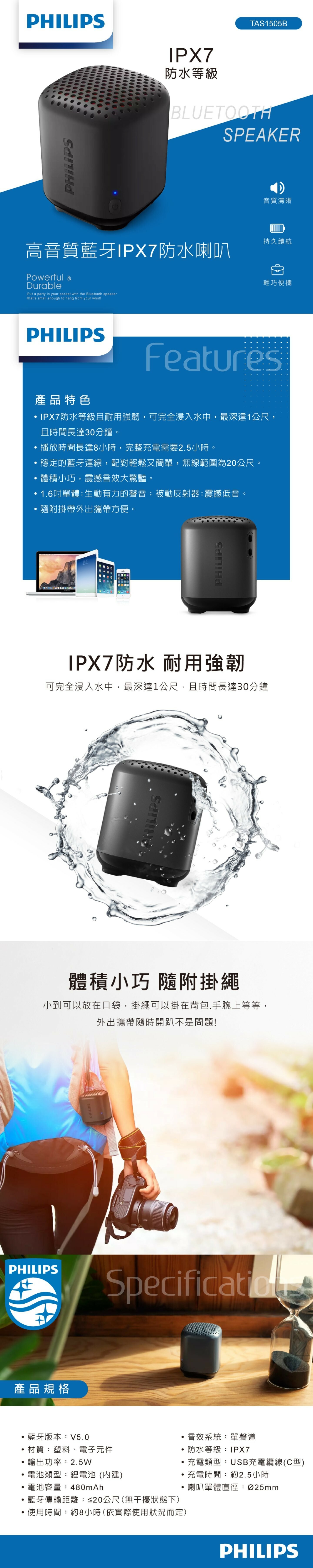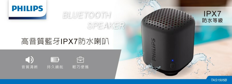 【PHILIPS飛利浦】TAS1505B 高音質藍牙IPX7防水喇叭