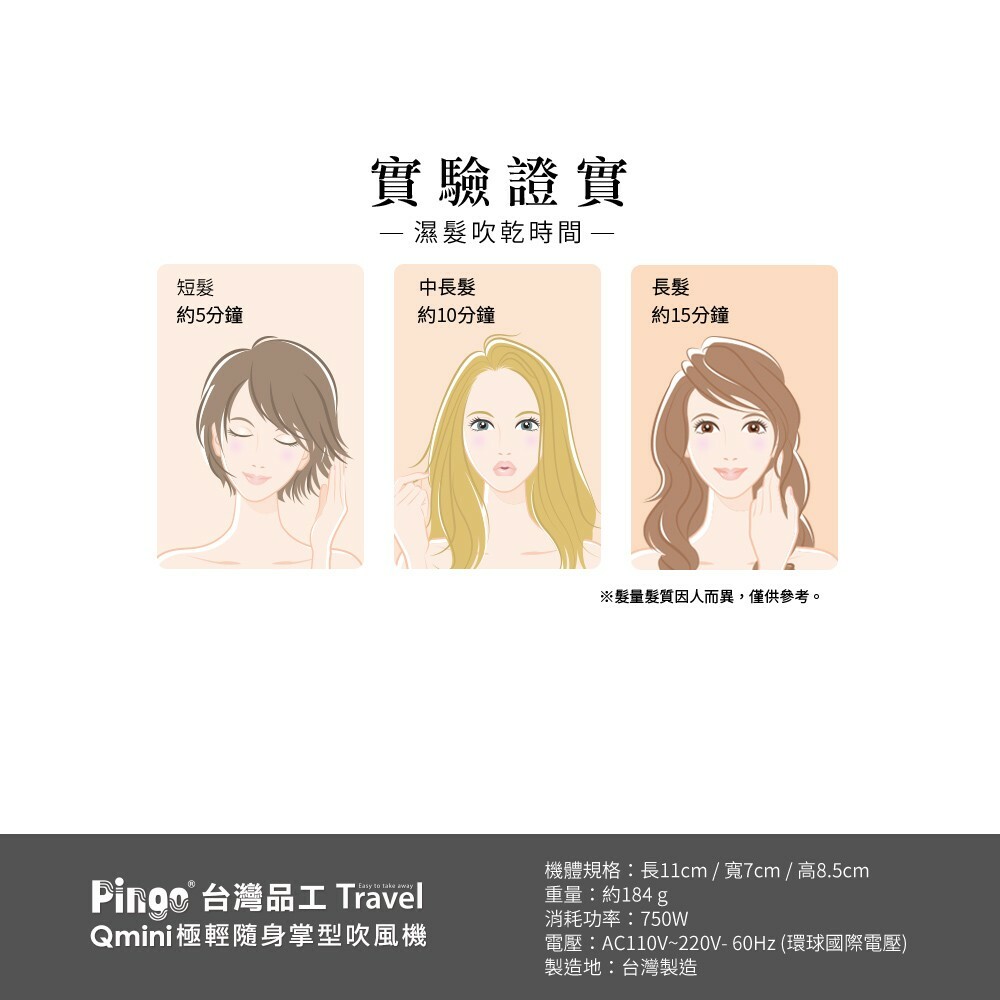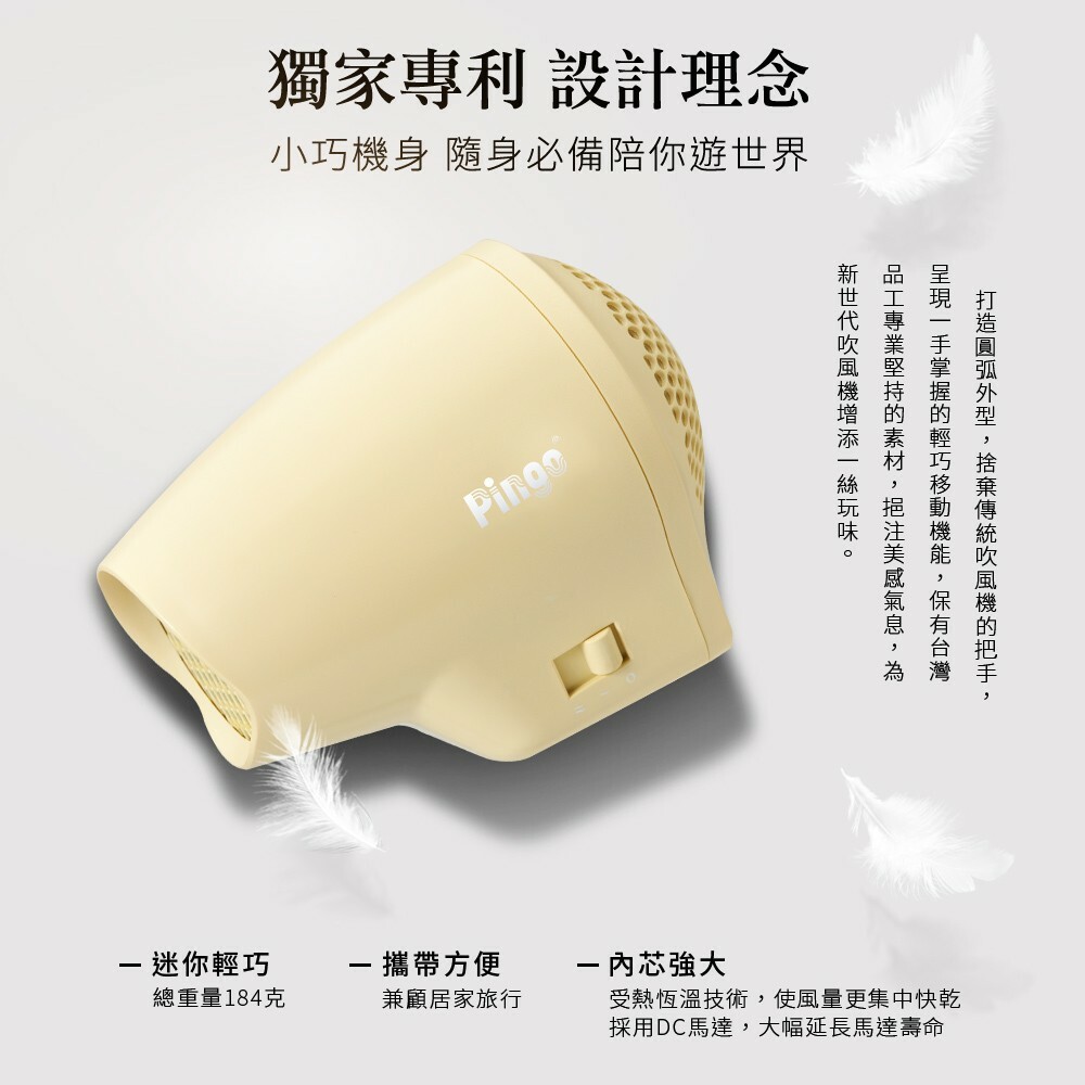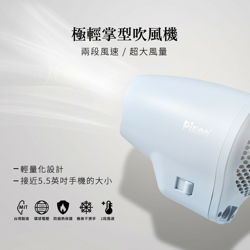 【PINGO台灣品工】Travel Qmini 極輕隨身掌型吹風機