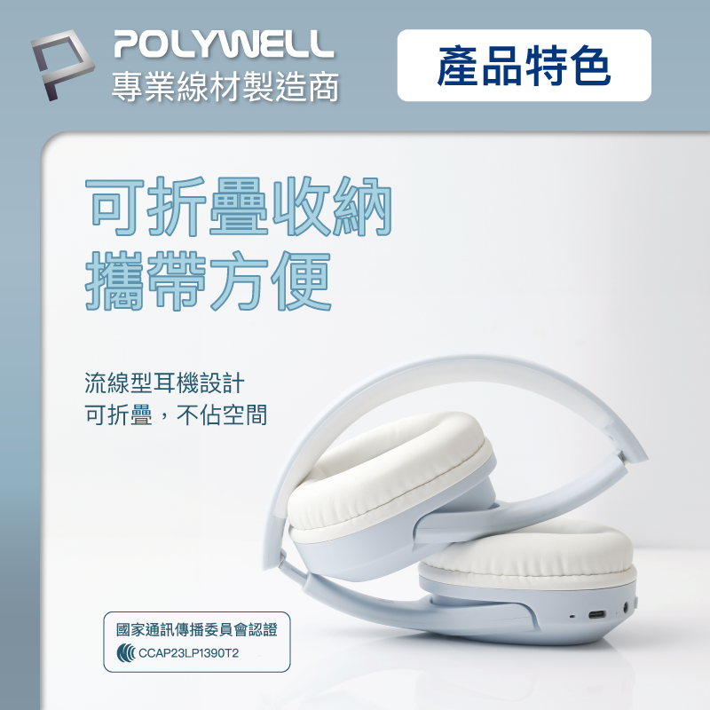 【POLYWELL】全罩式藍牙耳機 三色
