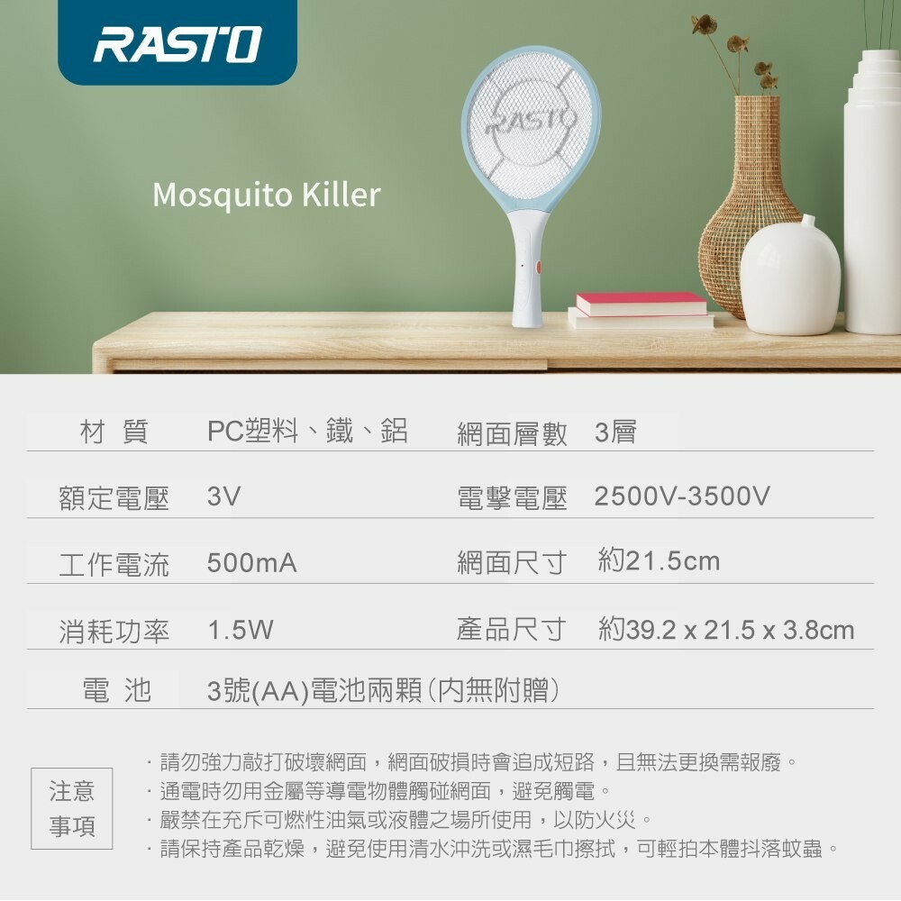 【RASTO】 AZ1 電池式極輕量捕蚊拍