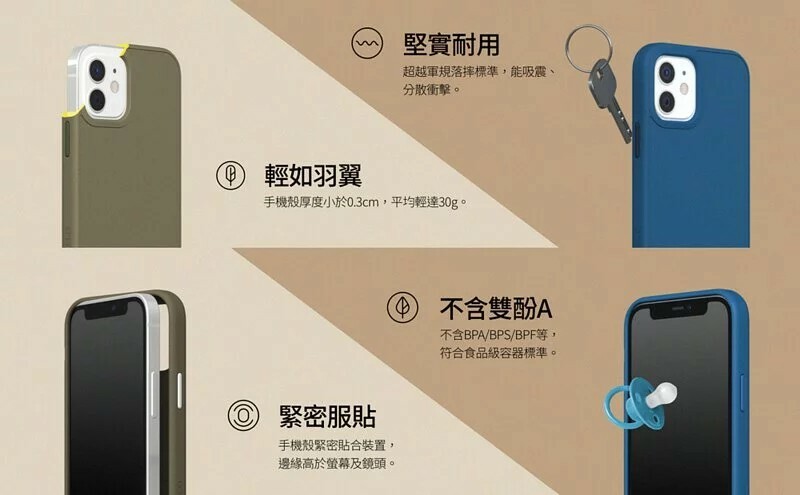 .增高邊緣包覆每個落摔邊角(手機殼高於機身、鏡頭)