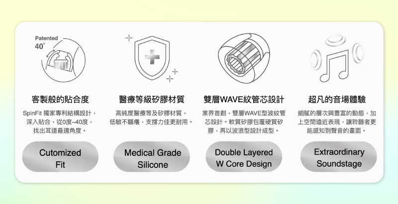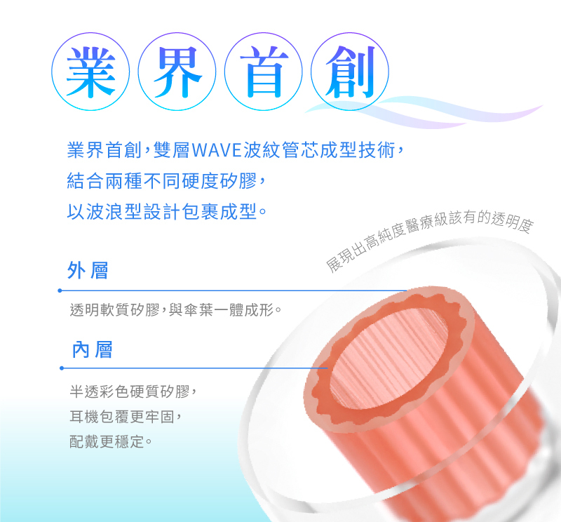 ●業界首創雙層WAVE管芯成型技術,耳塞包覆性強
