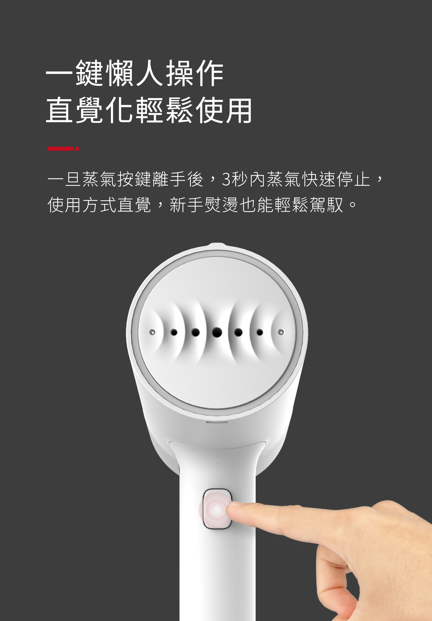 ・一旦按鍵離手後3秒內蒸汽停止
