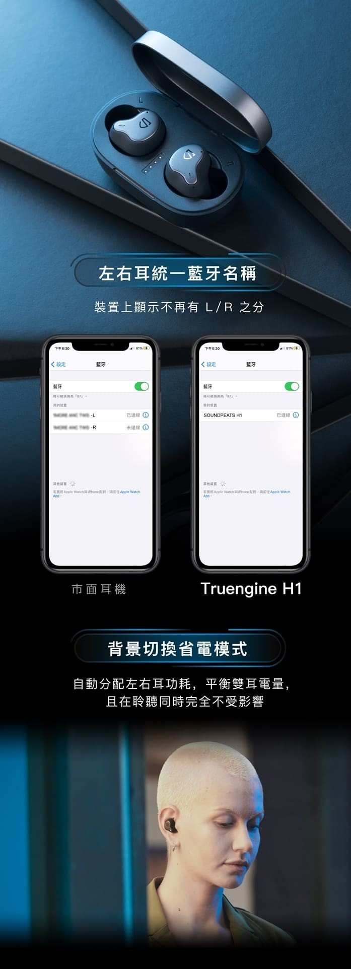 • TWS Mirroring,自動切換主副耳,以達最省電的效果