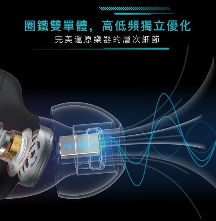 • 動圈+動鐵雙驅動,完美還原音樂層次細節