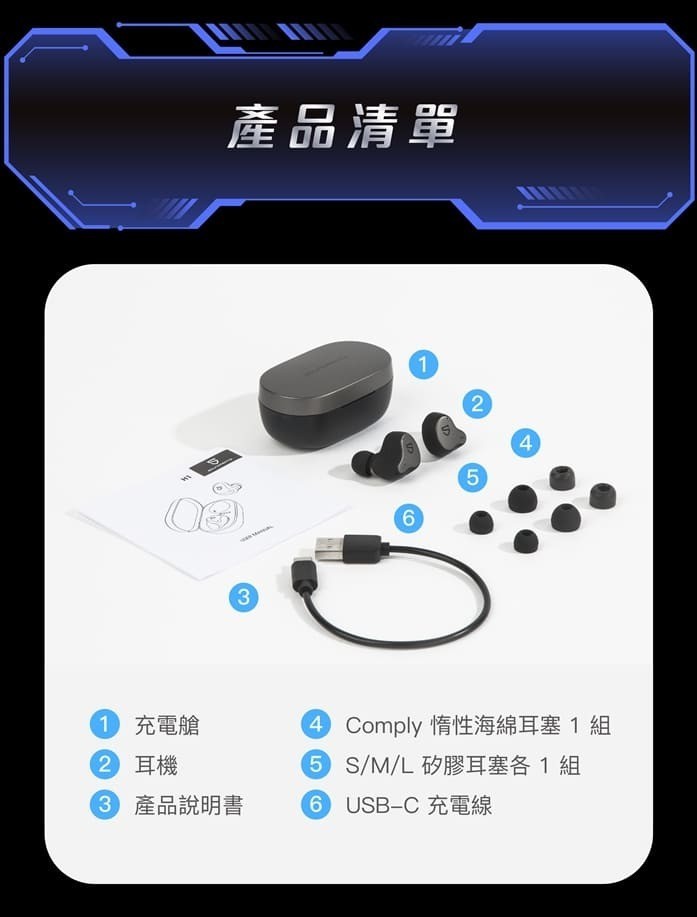 • 充電時間:耳機 1.5hr,充電艙1.5hr