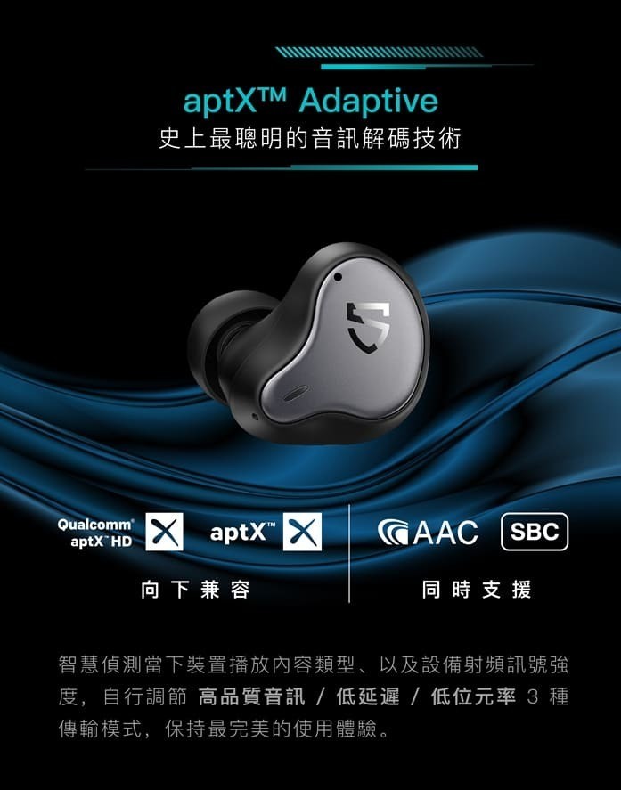 • 音頻解碼:AAC / SBC / aptX Adaptive